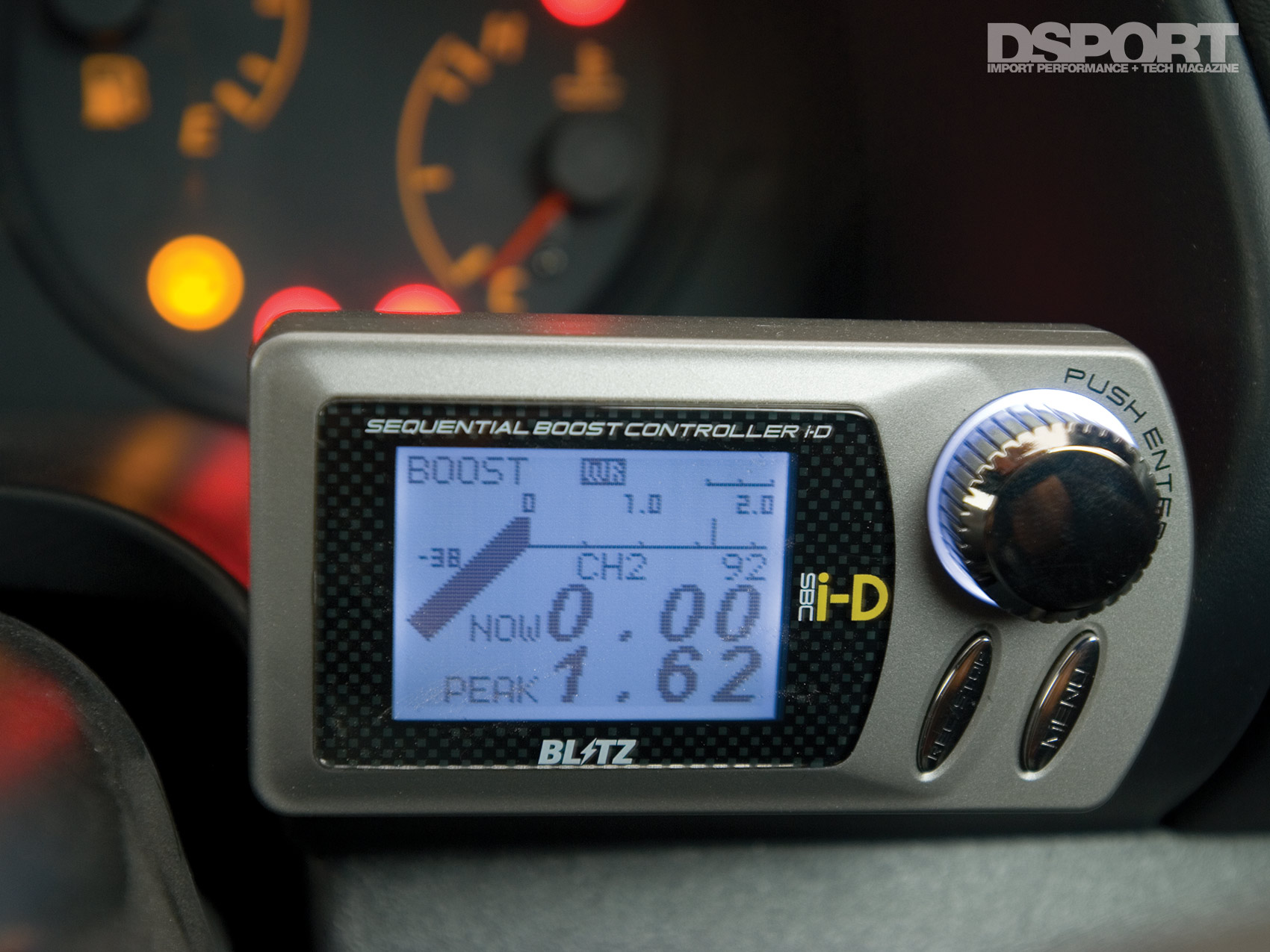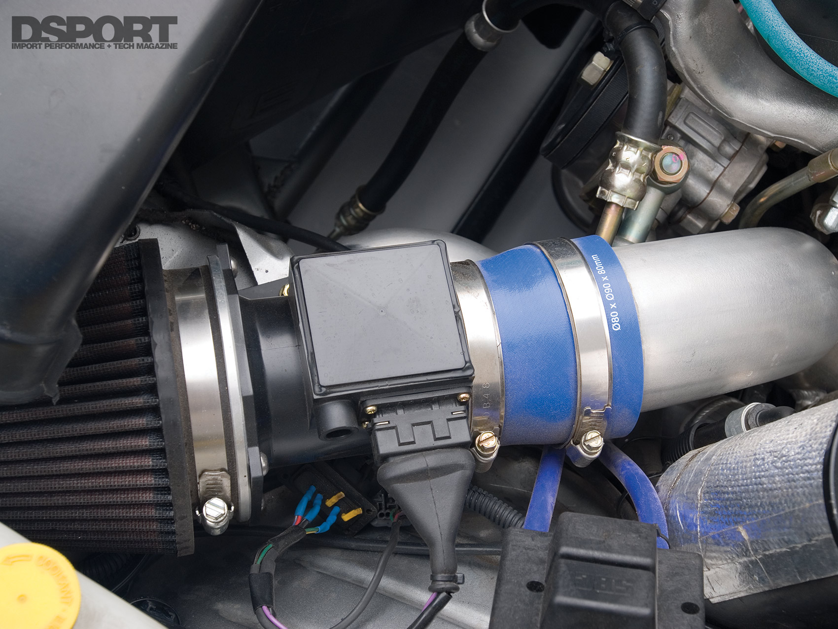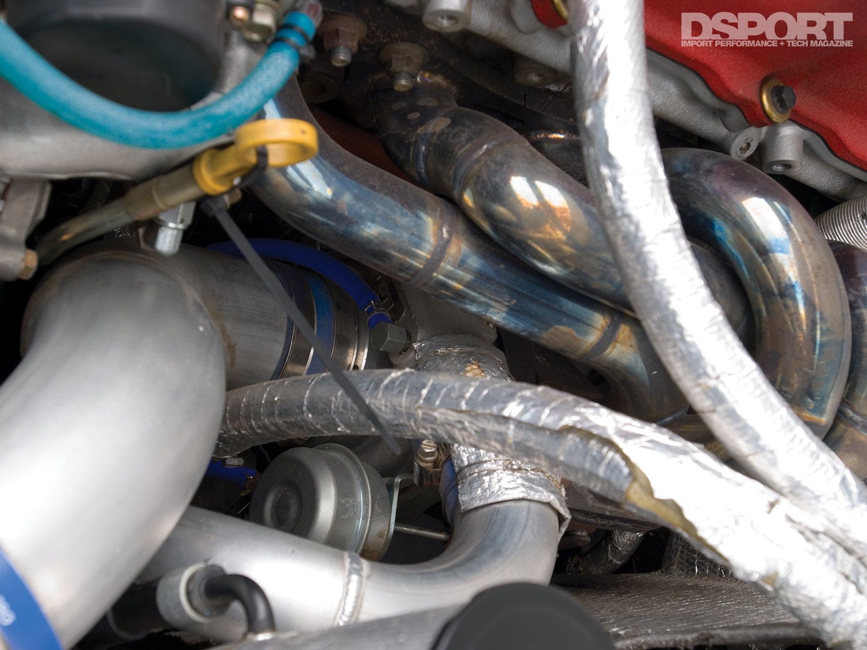Up top, the SR20DET cylinder head received the necessary valvetrain upgrades before the NISMO high-lift camshafts were bolted in place. Compared to the original bumpsticks, the Nismo camshafts open the valves higher and hold them open longer to allow a greater amount of airflow through the cylinder head. As a result, more power can be realized at lower boost levels. Of course, proper turbocharger selection is critical to achieving the desired boost response and power output from the engine. Both the factory exhaust manifold and turbocharger leave a great deal to be desired for a true performance application. Hence, the factory exhaust manifold was replaced with a Kazama Auto SR F1 stainless-steel, tubular turbo header. This is now home to an HKS GT2835 Pro turbocharger. This T3-flanged turbocharger features an internal wastegate. HKS rates the turbocharger at 420 horsepower at 1.2 kg/cm2 of boost pressure. Of course, the actual output is also a function of the type of gasoline used, boost pressure and the state of tune. At 1.4 kg/cm2 (20 psi), Kazama’s SR20DET produces 450 horsepower. When mated to the H- pattern Holinger 6-speed transmission, this SR engine can spend each and every corner in the sweet spot of its powerband.