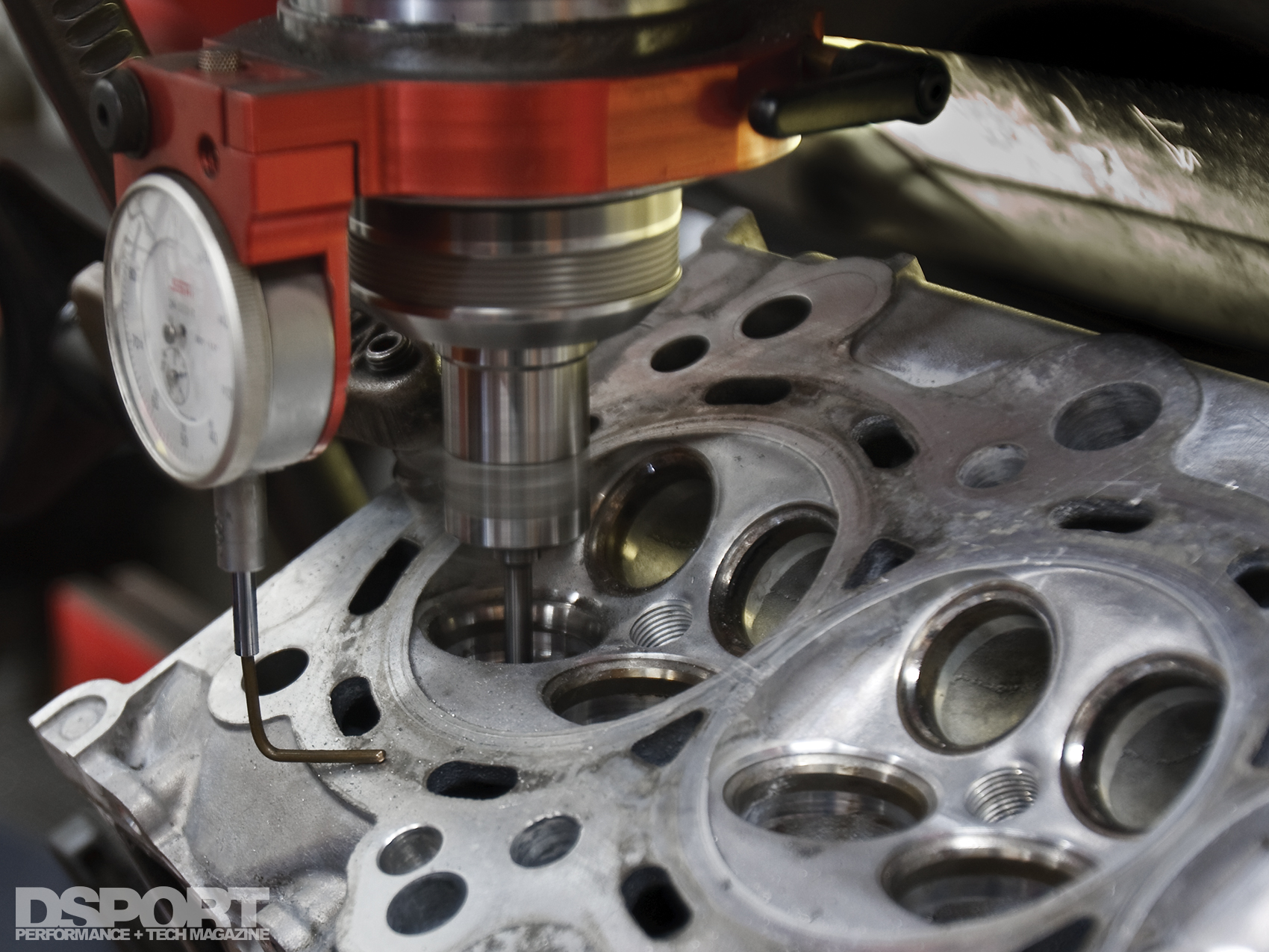 The KA24DE head was stripped bare and cleaned before inspection. Since we started with a used head, the condition of the guides, seats and surface must all be checked. In our case, the guides were marginal so we replaced them with high-performance bronze guides. Since we would be installing oversized (+1mm) stainless-steel intake and Inconel exhaust valves from Supertech, there was no need to inspect the original valves. Of course, if the stock valves are to be reused, they must be inspected and reconditioned. We also learned that the valve seats were in good shape so now the head was ready for the next stage.