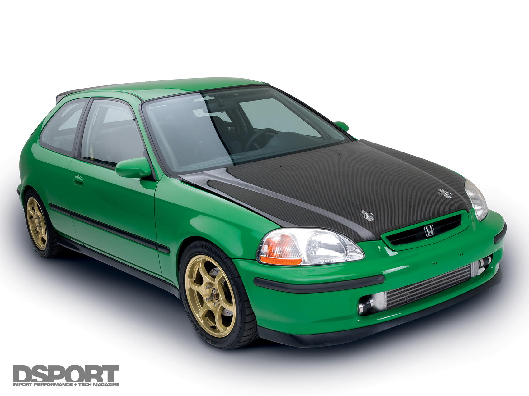 The D’Garage Project EK was built by DSPORT Project Coordinator Jeren Walker. His objective was to build a 9-second Pro-Am FWD Honda that he could drive to work everyday. Little did he know that his baby would grace the cover of DSPORT as quickly as it did. Before he knew it, his Heineken green (in honor of his favorite brew) Project EK was on the cover with Jessica Burciaga. Jeren was constantly working to extract horsepower from his turbocharged B-series engine. At the track, he recorded a best pass of 10.3@135MPH, just shy of his goal of breaking 9’s.