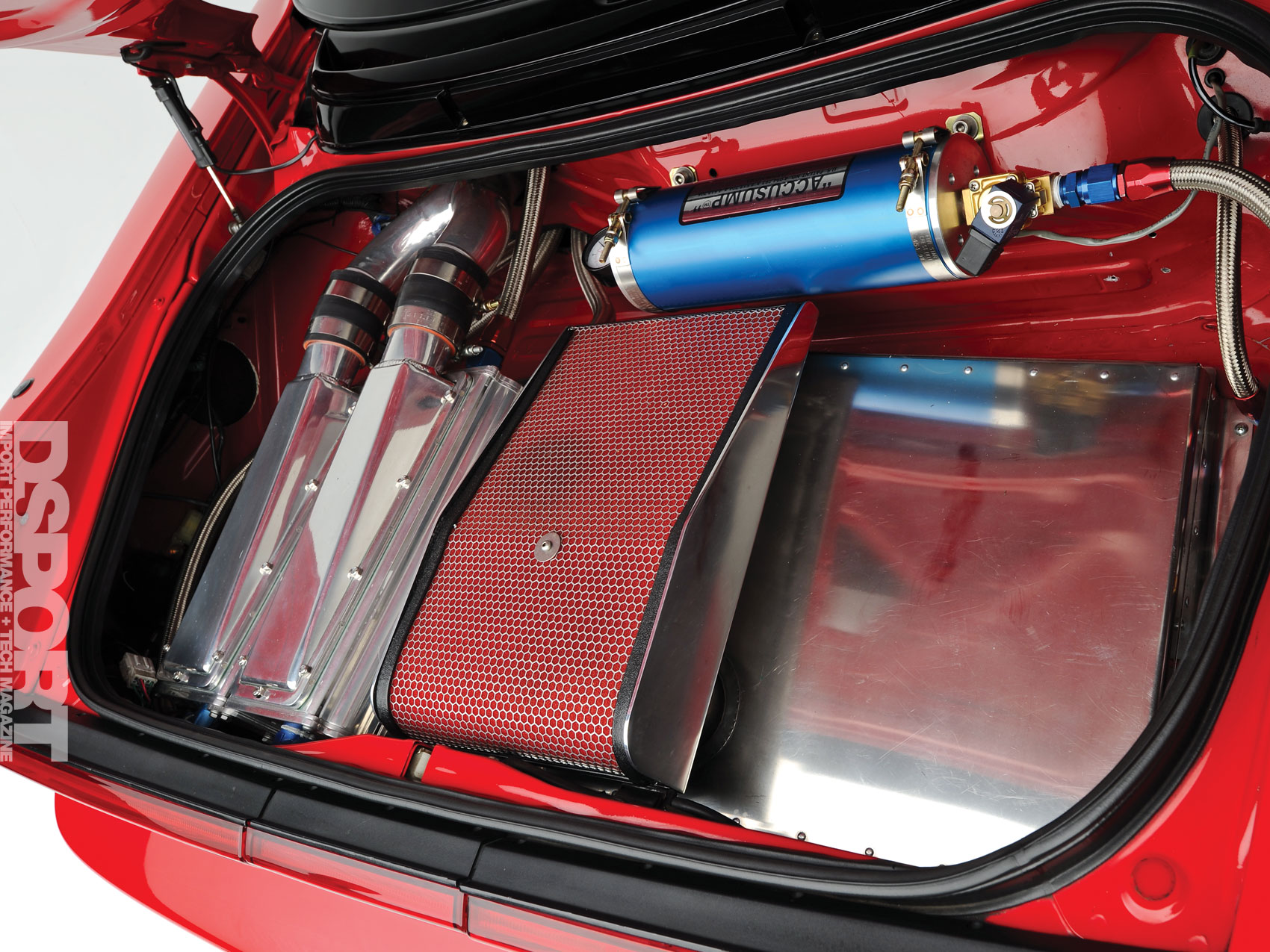 | Intercooler: | Dual Laminova 4-row Intercoolers Meziere 35-gpm Water Pump 4-quart Aluminum Reservoir Fluidyne Aluminum Radiator w/ -16AN lines |