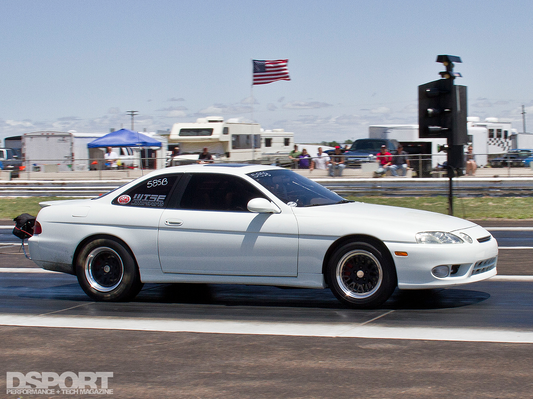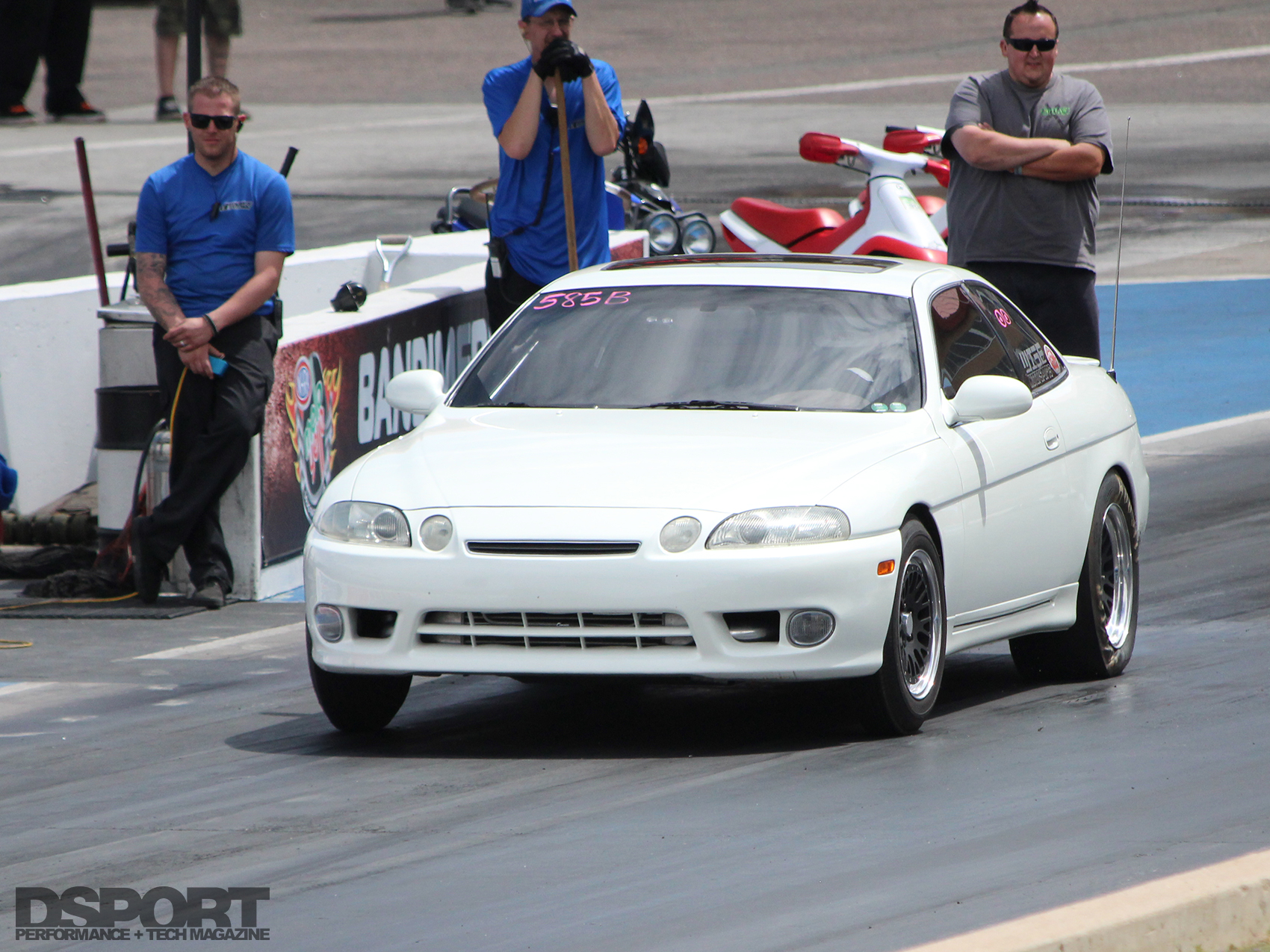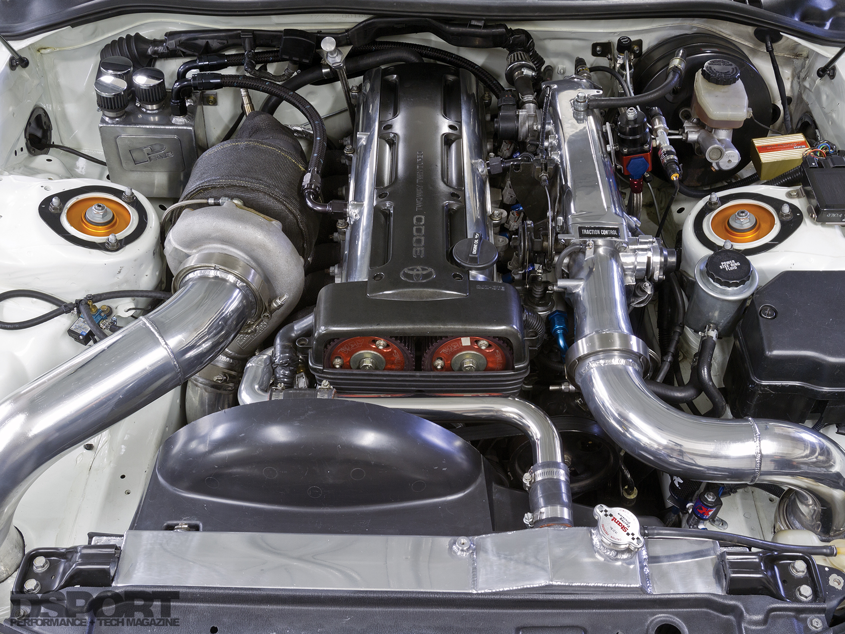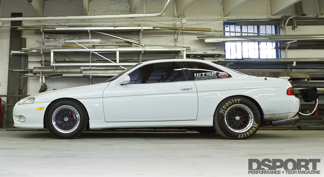 “I’ve always been a big road-racing fan. The car I originally bought had a 5- speed manual, and when I did the 2JZ-GTE swap, I upgraded to the 6-speed Getrag transmission too. I also upgraded the suspension and brakes to prepare the SC for road racing duty,” Miller stated. But his plans changed soon after, as he realized that there were so few tracks in the area. He didn’t want to strip all of the weight/luxuries out of the car, even though weight is certainly the enemy of performance. Miller reasoned, “Overcoming the weight challenge is easier when you are only going one direction and you only need to worry about front-to-rear weight transfer. So I decided to shift my focus to the drag strip instead.”