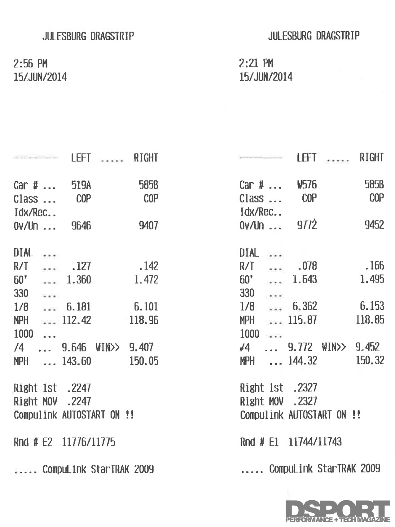 Knowing that he’d already achieved slips well into the nines, running at an even lower elevation should produce quicker slips. On June 14, 2014, Miller competed at Julesburg Drag Strip in Julesburg, Colorado, where the elevation is 3,520 feet or .667 miles above sea level. He not only beat his personal best with two quicker time slips, he also won in his class at the event. Both slips were in the 9.4-second range, the quicker being a 9.407-second pass at 150.05 mph.