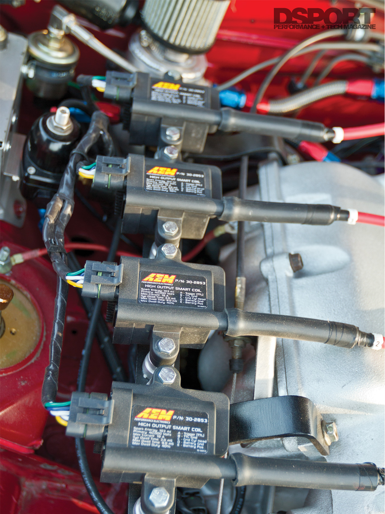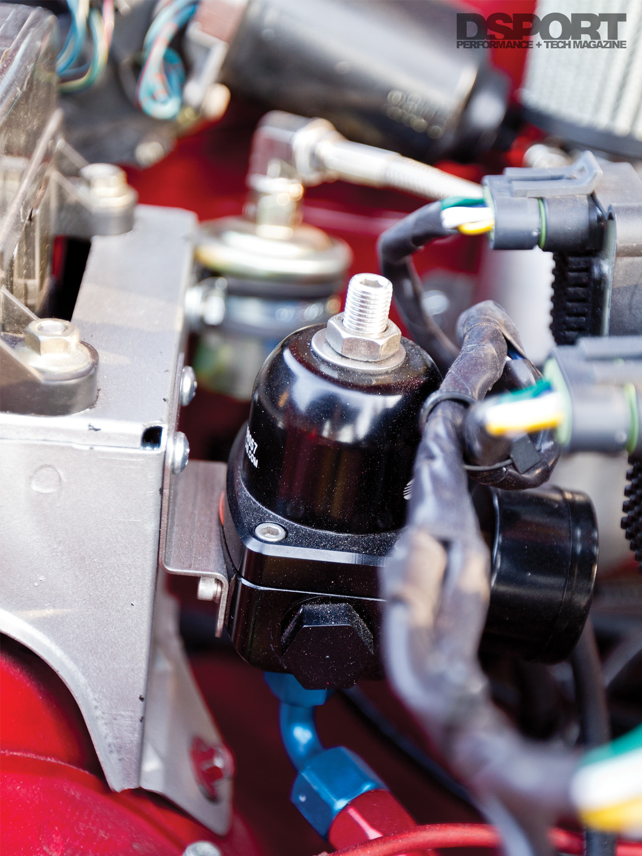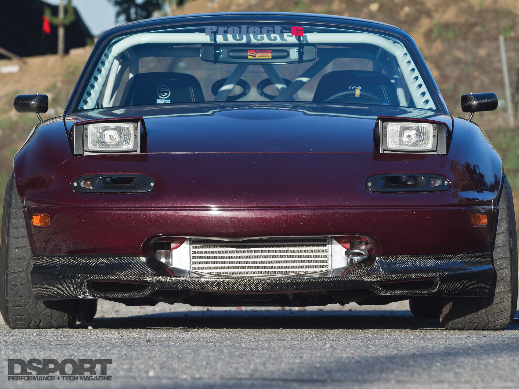 Rather than running a Garrett GT2871R turbocharger that helped put down 330 horsepower at 20 psi for Abbott, Guillote thought he would choose a smaller snail and aim for mid-200-horsepower output like the many others found in the Miata community. However, he ended up making more power instead. Artech Fabrication crafted a custom low-mount manifold to feed into a Garrett GTX2860R turbocharger. A custom downpipe routes gasses to the back, while aluminum piping directs pressurized air to the Vibrant Performance intercooler core with custom end tanks. Instead of spraying expensive 110- octane fuel into the combustion chambers like Abbott, Guillote elected to convert his fuel delivery to support E85. With Injector Dynamics ID1000 injectors taking their place at the intake ports, a DeatschWerks 300-lph fuel pump supplies the fermented corn juice to the fuel rail. Hooked up to the hubs of Road Race Engineering’s Dynapack chassis dyno, the fuel and ignition maps of the AEM EMS4 were refined. With boost set to 22 psi, the Miata spun the hubs to the tune of 374 horsepower and 331 lb-ft torque. Guillote recalled, “I was initially set on smaller numbers, but I guess it really didn’t work out as I had originally planned. I just wanted to bolt on a cheap T25, but that quickly evolved into a Garrett GTX series turbo with a TiAL Sport V-band exhaust housing, followed by a full V-band manifold and exhaust setup. Jeff [Abbott] has always poked fun at me for deviating from the plan.”