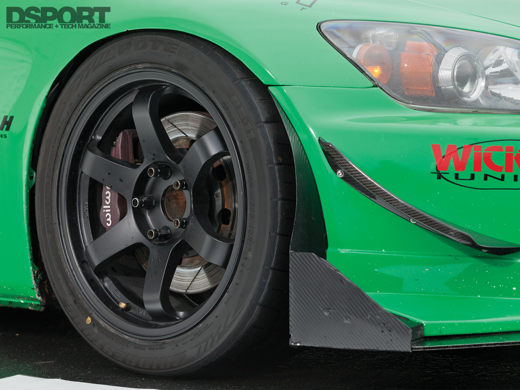 Where improvements take place in one area, inevitably, something else will give. With a stiffer chassis and improved suspension, the factory wheel and tire combination could not provide the necessary grip to sustain the traction needs of the S2000. Thus Tang mounted a set of Rota Grid wheels with Hankook R-S3 or Bridgestone RE11 rubber, depending on the track he planned to go to. To put extra pressure on the wider tires and to combat the S2000’s notorious snap oversteer on high-speed courses, aerodynamic enhancements were needed. An APR Performance GT front bumper with Prima Racing’s honeycomb composite splitter, dive planes and end plates help to plant the front end, while a J’s Racing Type-2 carbon-fiber GT wing applies pressure at the rear.
