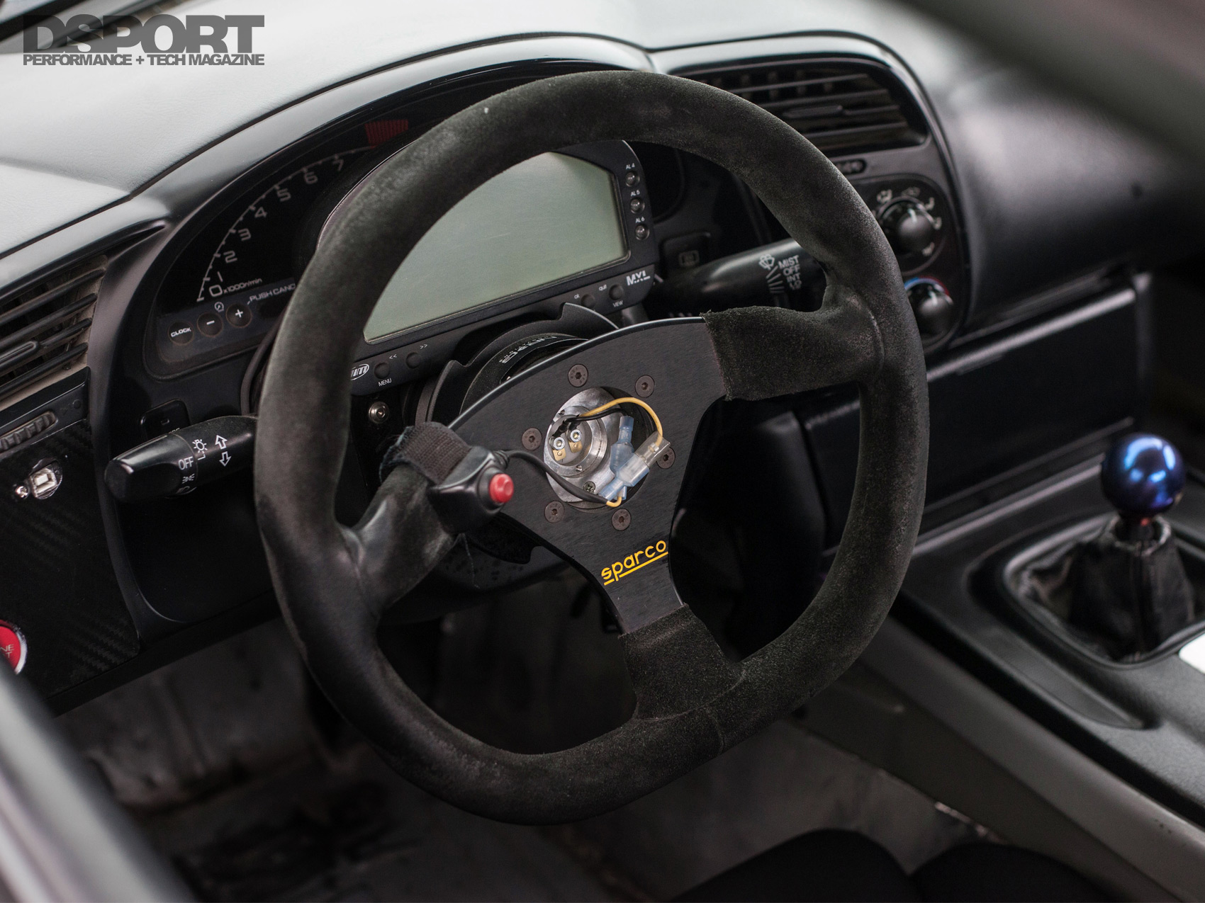 While Honda engineered the S2000 to be stiffer than a typical chassis because it’s a convertible, chassis flex is still factored in for comfort. However, on the track, chassis flex is just as guilty of affecting handling and response. To stiffen the chassis, a combination of J’s Racing’s upper brace with a CT Engineering front lower X brace unify points of flex. Inside the cockpit, a Hard Dog roll bar serves double duty, not only stiffening the chassis but also providing a degree of protection to the occupants in the case of a rollover.
