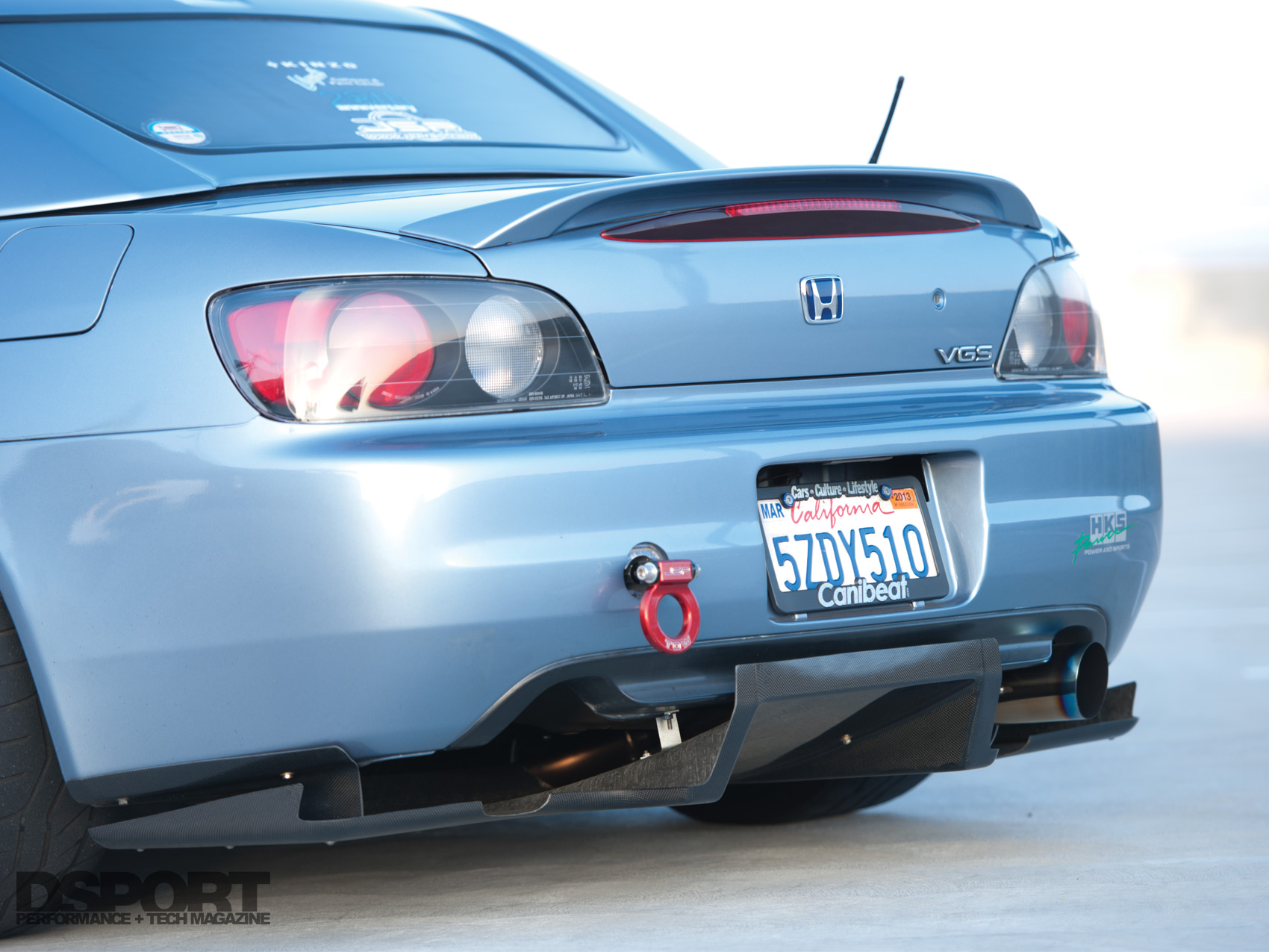 aerodynamic piece required Lloyd’s Collision to modify an existing piece so as not to break the original lines and purpose of each functional aerodynamic piece. These additions were the result of dozens of on-track experiments and suspension settings data collected by Hutchinson to further improve the vehicle with tried-andtrue suspension settings. A CWEST version-2 authentic front bumper with optional carbonfiber canards provides the bulk of the frontend downforce while improving airflow to the radiator. “I first started with J’s Racing everything but I ended up selling all of it and starting over after seeing so much knock-off stuff on the market. I didn’t want to be associated with that,” he states. Lloyd’s also extended the APR carbon-fiber splitter to properly fit the extended fenders. At the rear custom-widened metal fender flares terminate in a factory bumper that wears a Top Secret carbon-fiber diffuser. “The rear diffuser made a huge difference in the amount rear downforce at the track. There was so much downforce generated, I really had no choice but to widen the fenders to maintain the proper ride height and suspension travel.” Remaining aero enhancements include a Chaser Aero hardtop attached with OE hardware and factory-option trunklid spoiler. In case of off-track excursions, of which Hutchinson has had a few, functional tow hooks from J’s Racing and JSP Fab bookend the front and rear of the AP1 chassis.