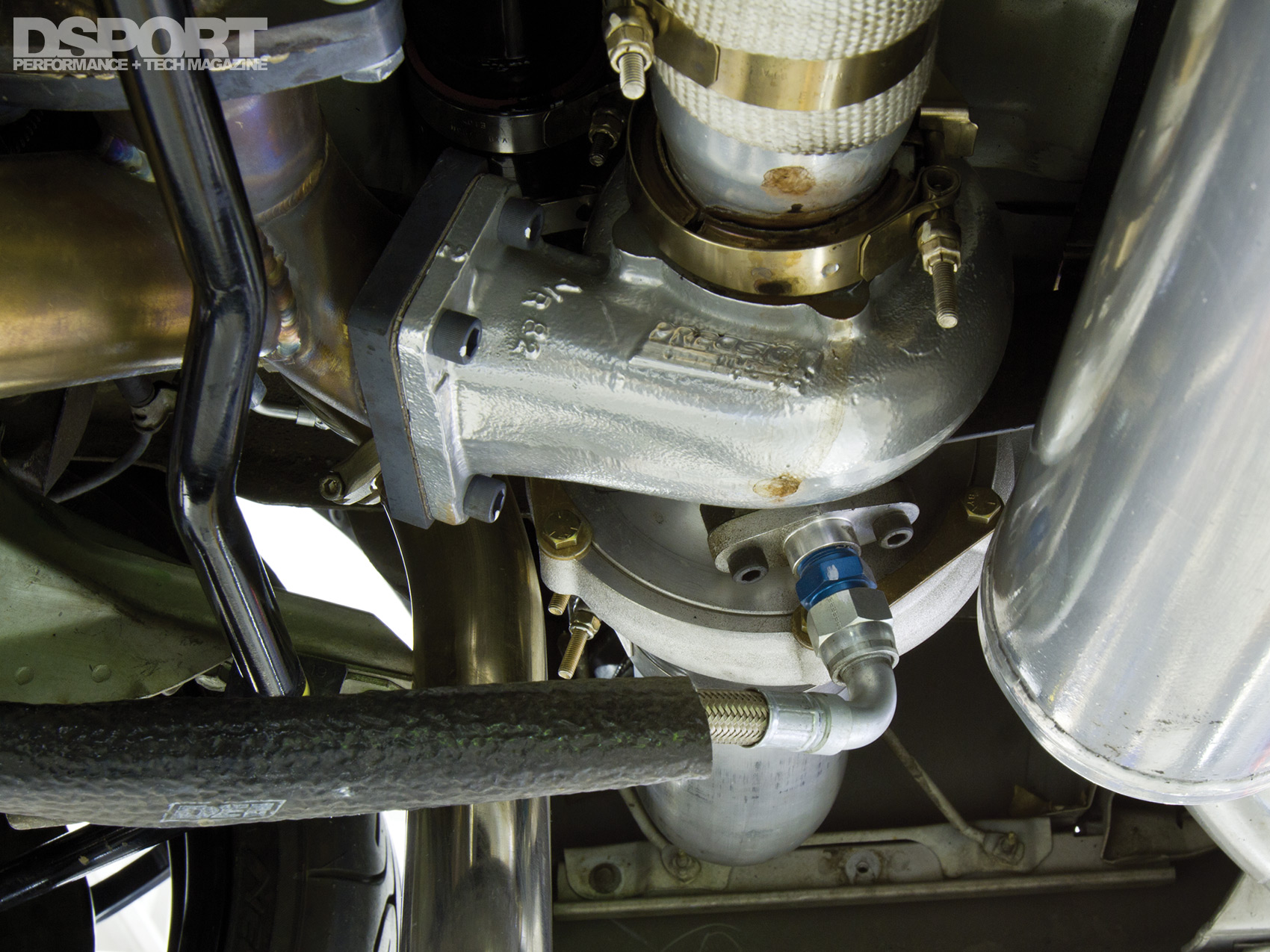 Insane Speed is no stranger to high performance. With a resume packed with 1,000-plus horsepower cars to its credit, extracting the maximum from the factory 3-liter V6 engine would be child’s play. Given its mid- engine layout, work began underneath the NSX chassis. Custom stainless-steel manifolds were fabricated to direct rapidly- expanding gasses into the turbine inlet of a Precision Turbo & Engine 6265 turbocharger. Even though the horsepower target is little more than 400 horsepower, the dual-ball bearing, billet-wheel 6265 turbocharger is capable of supporting up to 700 horsepower, leaving room for future modifications and increases in power. Once the gasses spin the turbine wheel, they are directed into a Magnaflow muffler equipped with dual exhaust outlets.