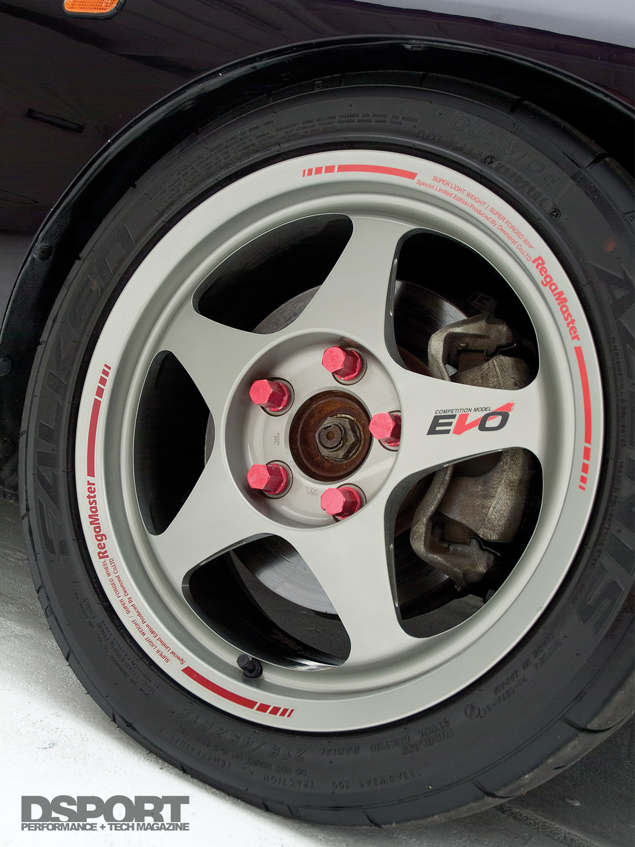 Rawgie then installed the 5-Lug conversion and upgraded the suspension while he was at it. A set of JIC FLT-A2 coilovers set the height at all corners. Making the connection to the pavement, a set of 16-inch RegaMaster Evo wheels wrapped in Falken Azenis tires were selected. JDM Type-R sway bars, Spoon frontad rear strut bars and L-Con traction bars assist in the handling and traction department.