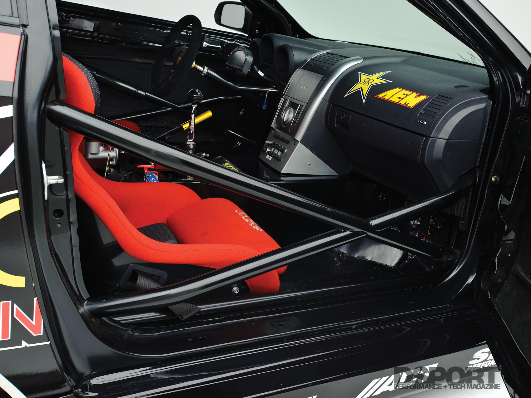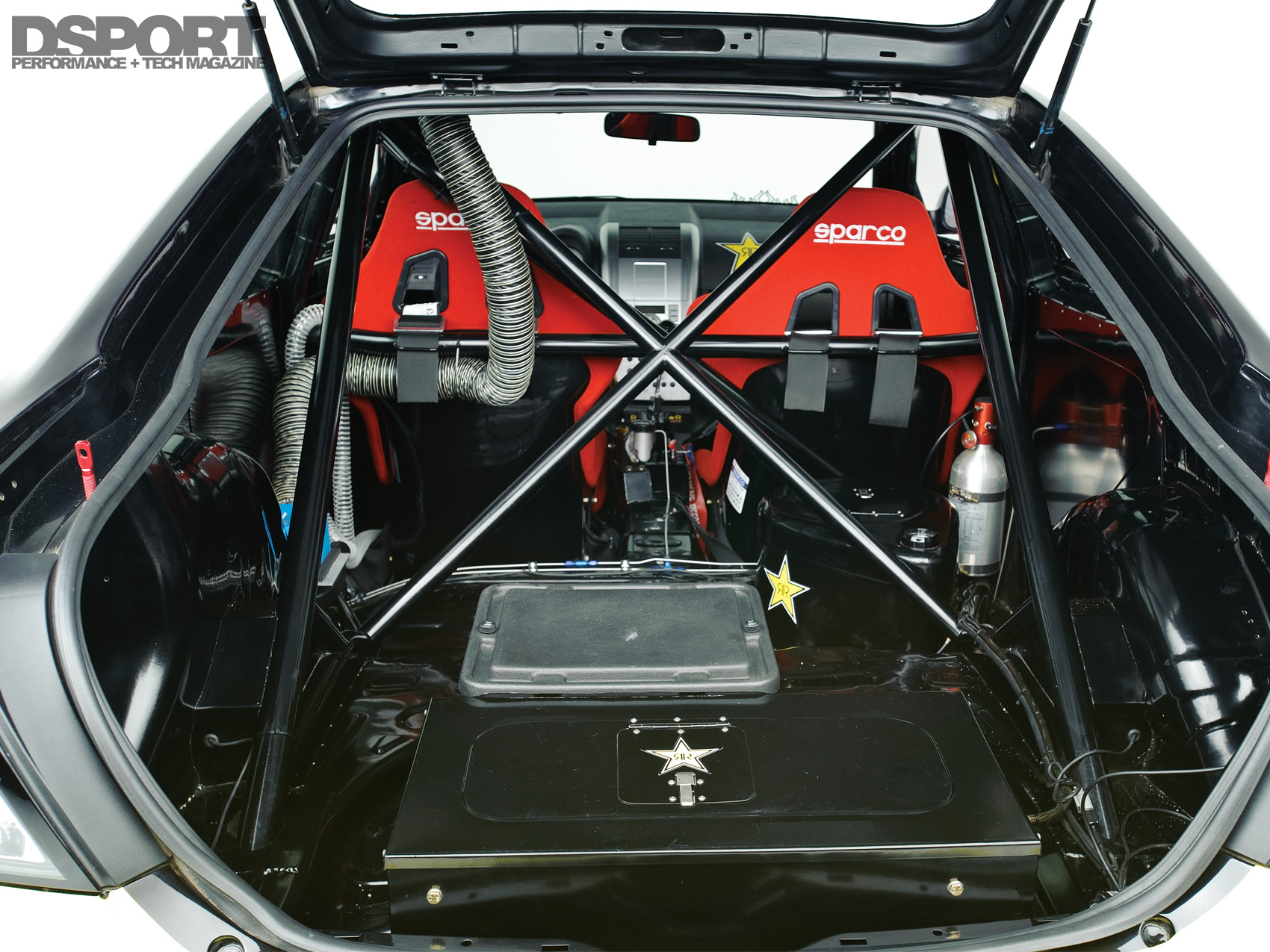 Wasting no time, the tC chassis was completely stripped and gutted before being sent to Rob Miller Race Cars for the cage and RWD conversion. Formula D requires a chromoly cage built from 1.5-inch diameter tubing. Steph calculated that an incease to 1.75-inch tubing would add only 20 pounds while delivering improved strength and rigidity. To facilitate the rear-wheel drive conversion, a rear subframe from a Toyota Supra was mated to the tC chassis with relative ease.