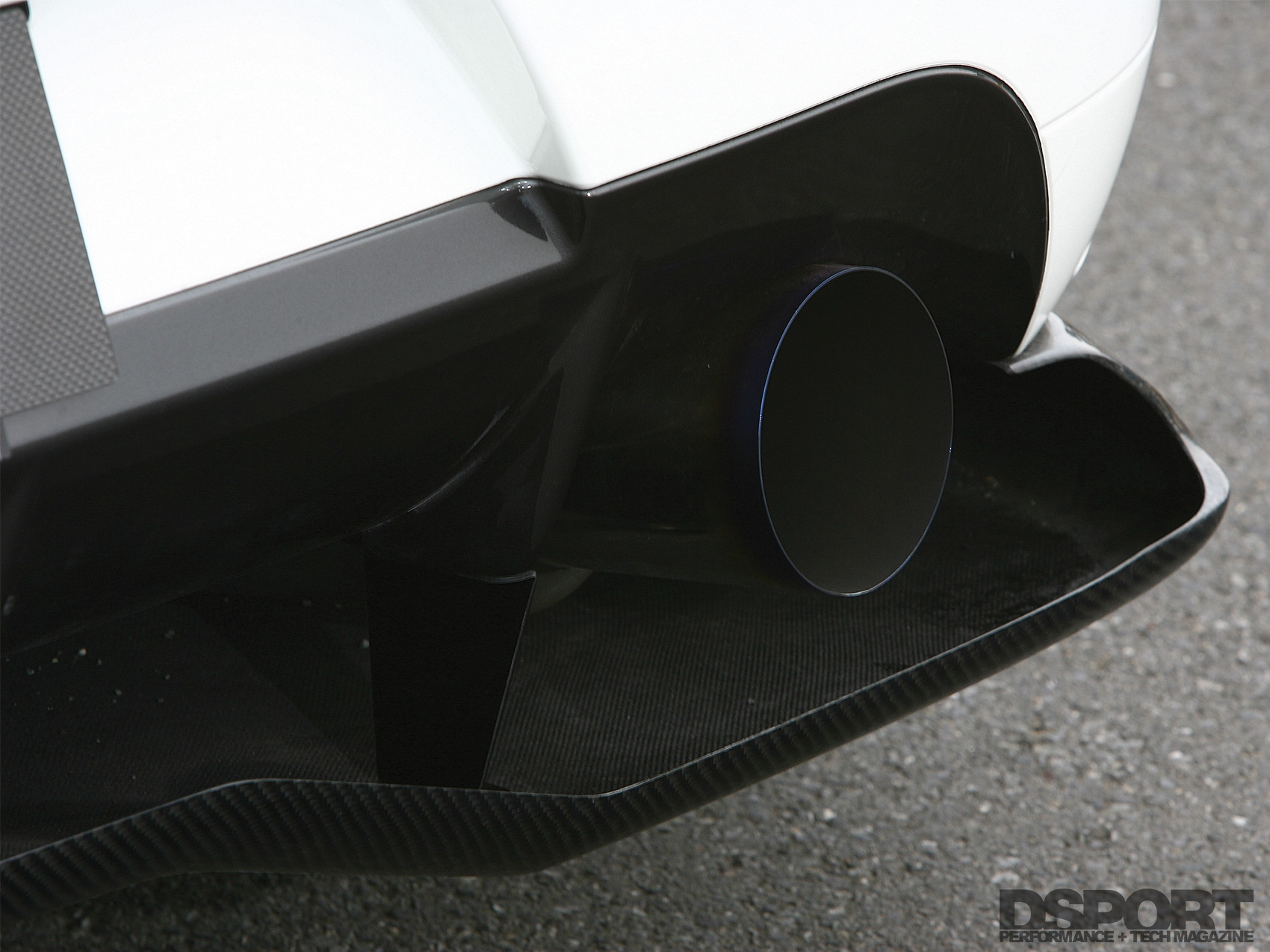 After completing the chassis, the exterior received a full aero tune. Voltex Racing’s Cyber street bumper with carbon-fiber canards cuts through the wind while Voltex’s side skirts, carbon-fiber rear diffuser and Type-5 spoiler help to facilitate air flow and create the downforce needed to stay planted on the tarmac. A Voltex carbon-fiber vented hood was chosen to release heat from the engine bay. Garage HRS 70mm wide fenders and Voltex rear over fenders were grafted in place to increase the capacity of the wheel wells. This facilitates the use of wider rubber for a wider contact patch. With the exterior components ready for paint, Itoh sprayed the EVO IX with a frost-white coat of paint throughout before the custom graphics were applied to the body.