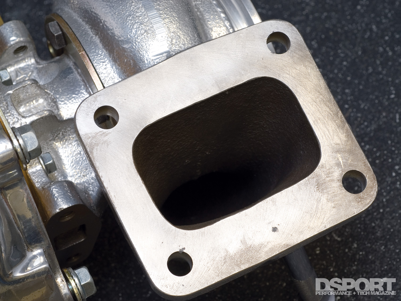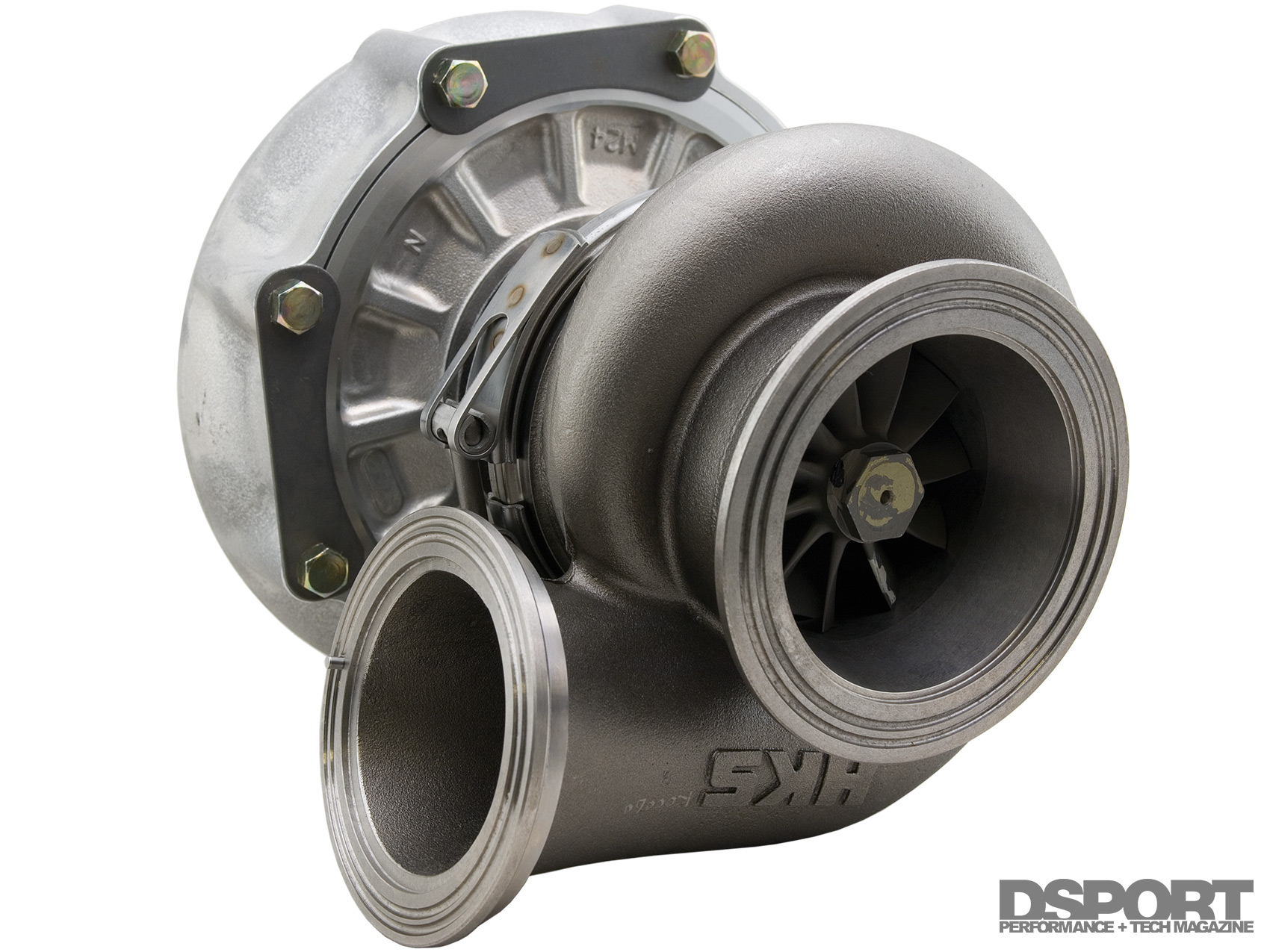 The HKS T51R Kai turbocharger features a 99.1mm V-band manifold flange instead of the traditional T4 four-bolt flange. This design not only improves gas flow into the turbine housing by reducing the friction on the walls of the turbine housing, it also offers an additional 30-percent of flow area compared to the four-bolt flange. These features combine to improve the performance and reliability of the turbocharger.