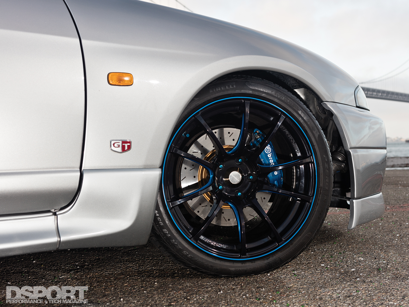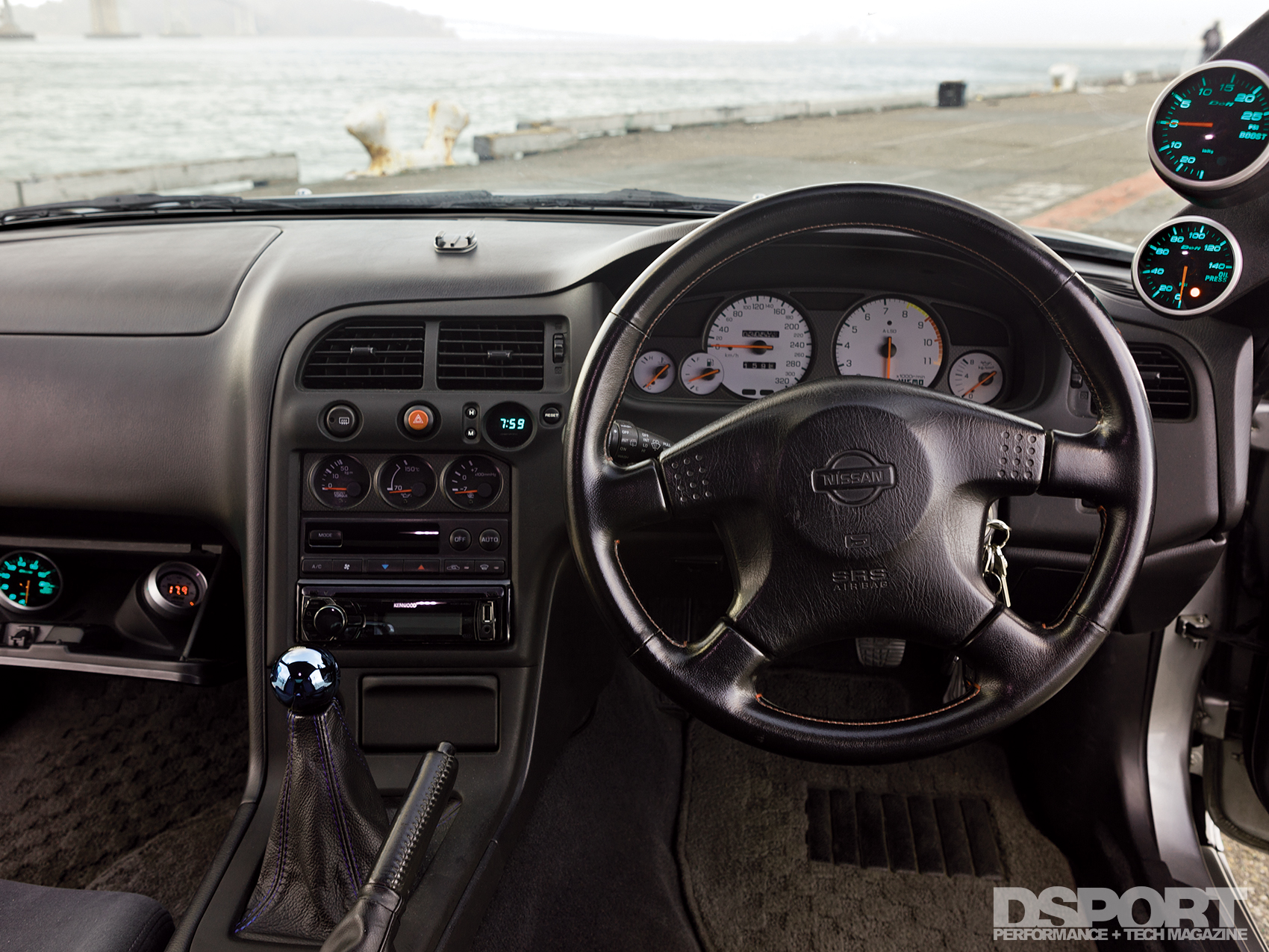 Producing more than twice the factory horsepower output took the Skyline to the next level for Craig. Now he wanted the R33 to look the part. BC Racing adjustable coilovers dropped the chassis over a set of WedsSport SA55 wheels mounted with Pirelli P Zero rubber, closing the gap between the arches and the tires. Inside the cabin, Craig risked information overload as a host of DEFI gauges on the A-pillar and in the glove box supplement the NISMO gauge cluster in front of the steering wheel.