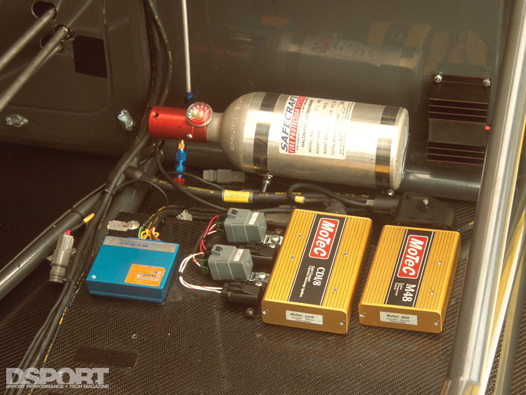 Despite a very busy year racing the 1999 Civic Hatchback, and building the new 2001 Civic Coupe, the AEM DRAG Civic was finally race ready at the end of June 2001. The first test sessions were at Los Angeles County Raceway in Palmdale (Littlerock), California. Known for uncooperative conditions during that time of year, our Southern California location provided no alternative choices. Despite the 100-plus temperatures and high winds, we ran a best of a 10.17 during the three runs. But breaking records was not why we were there. Our mission was to find problems and make improvements as needed. Overall, the car checked out OK.
