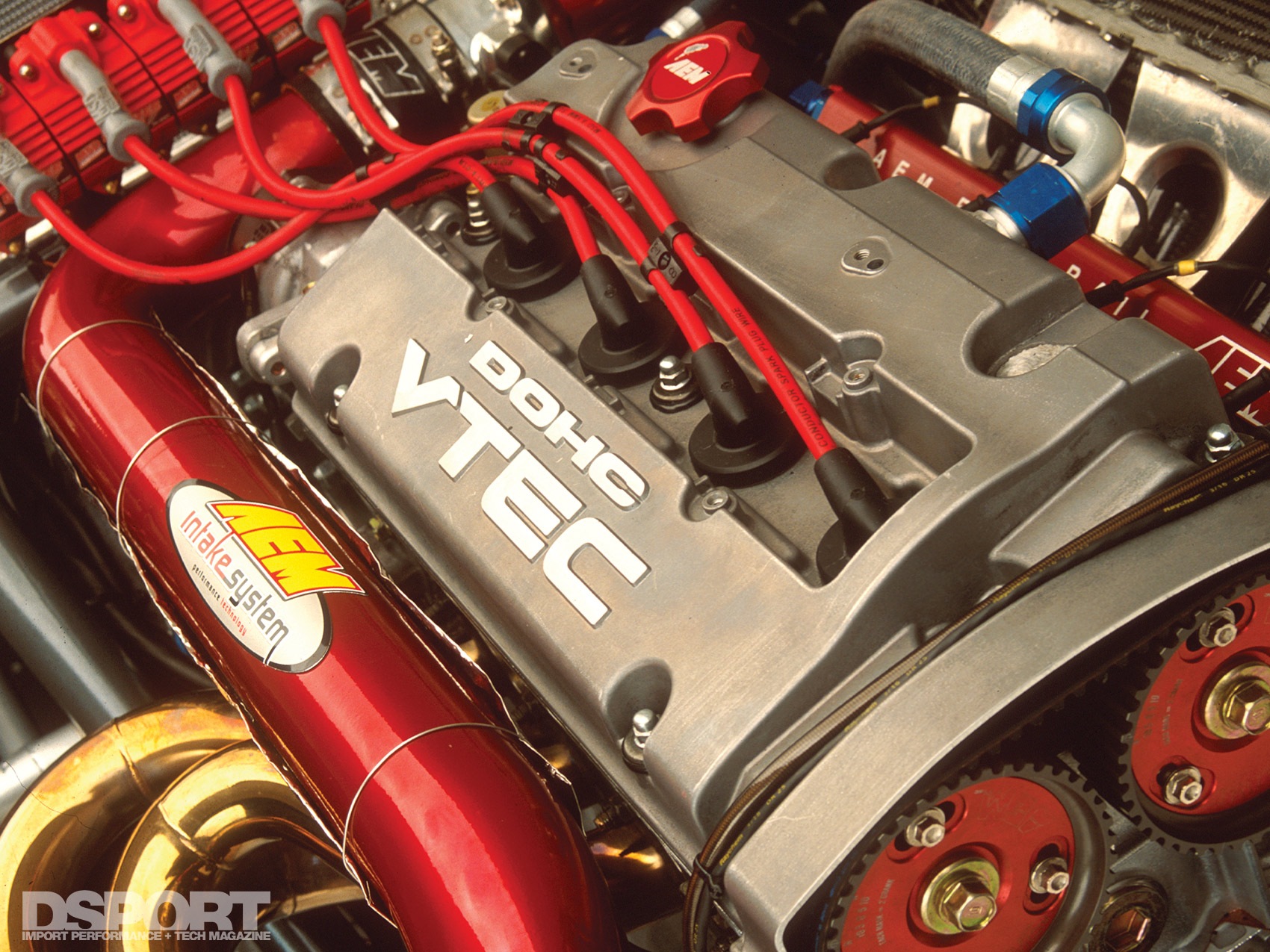 With the AEM DRAG Civic, financial backing made it possible to purchase the best parts and make a lot of custom one-off parts that were not readily available at the time. The engine we used is a 1995 2.2 Liter Prelude V-tec, a production code H22A. A factory crankshaft, billet connecting rods, JE custom forged pistons, and some magic from Benson’s Automotive Machine set the foundation. Up top, we would run a Ferrea valve train, installed into a ported head by Port Flow. So that I could only be mad at myself if anything went wrong with the engine, I did all of the blueprinting and assembling myself.