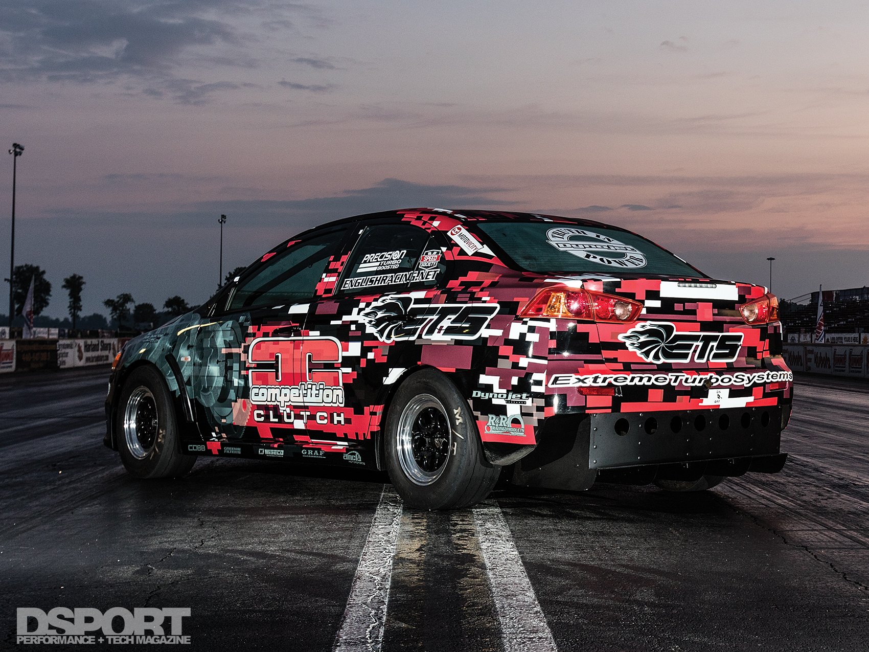 Compared to the venerable Mitsubishi 4G63 engine, which has more than two decades of proven performance, ongoing development and accolades beyond measure, the 4B11T engine has a relatively short resume. Nonetheless, ETS decided to purchase this 2008 EVO X GSR brand new for the purpose of research and development of its performance catalog. As has been the case before, ETS would build and fund the vehicle, while English Racing would handle the tuning and campaigning of the vehicle at the track. In only a year, they set horsepower records with the EVO X. Shortly after, they were the first to break the nine-second barrier on August 11, 2010 with Lucas English behind the wheel.