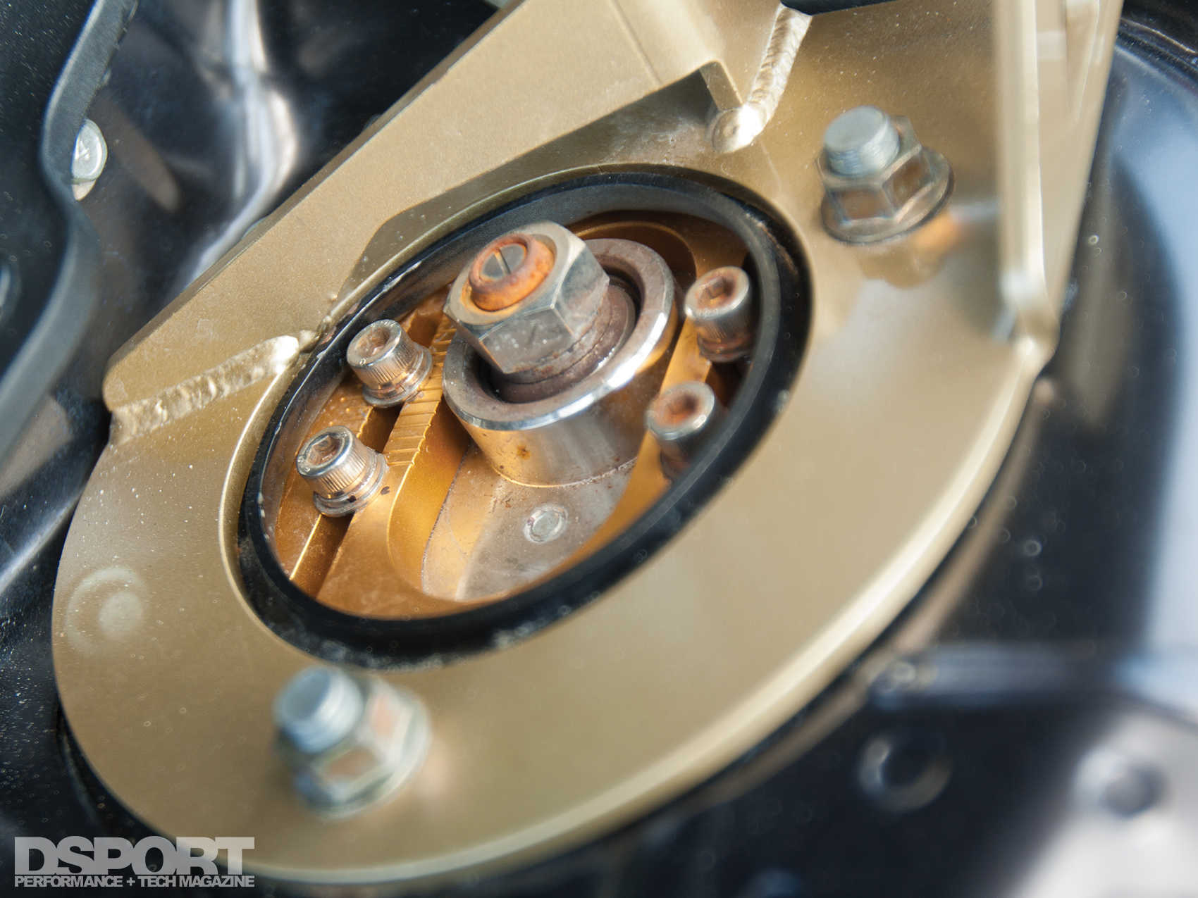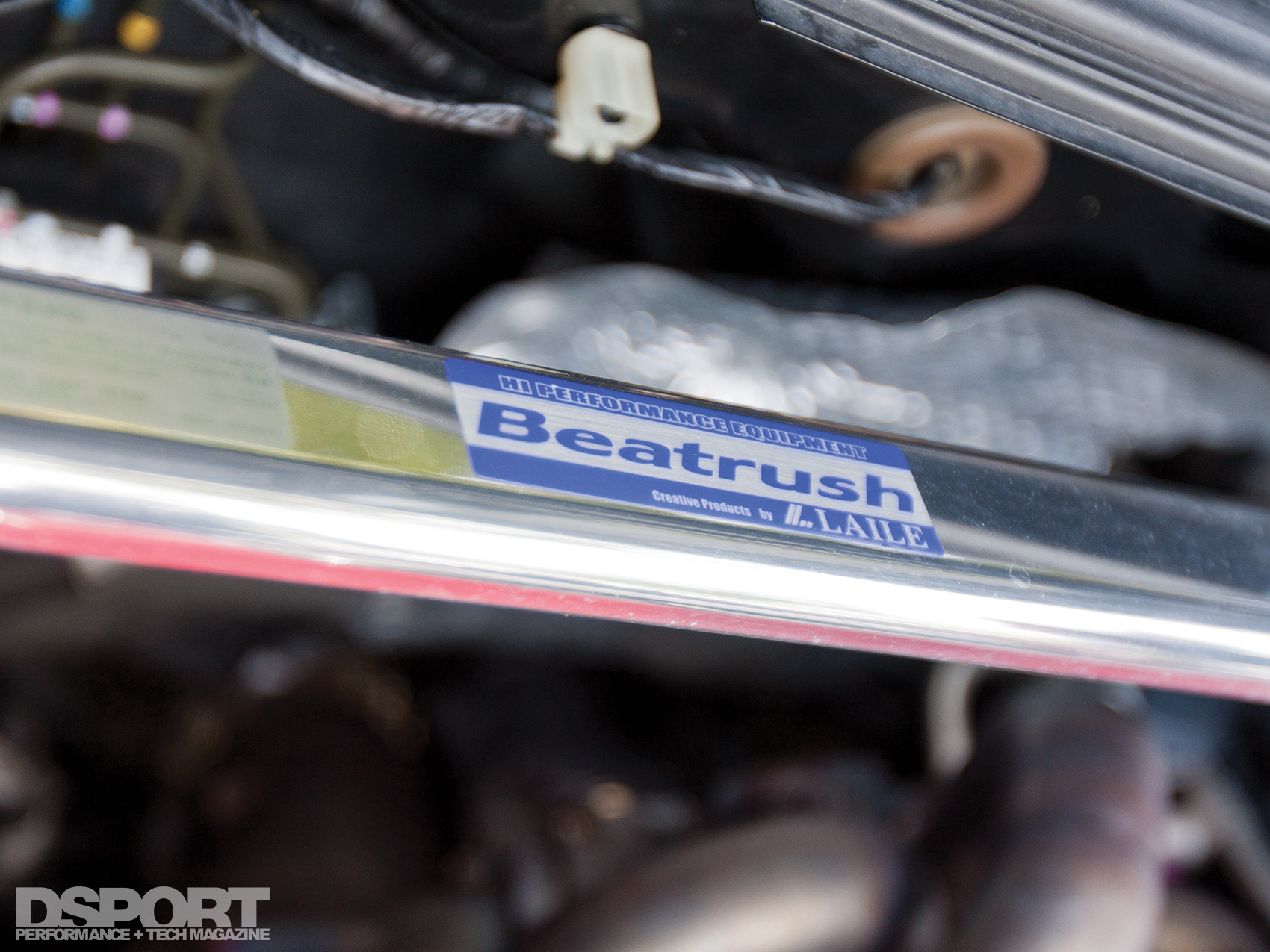 The EVO wore several wheel and tire sets during Diaz’ search of the perfect combination for street and occasional track duty. Currently, 19 x 10.5-inch Volk Racing TE37s carrying Nitto NT-555 drag radials fill the wheelwells. JIC-Magic FLT-TAR coilovers control the wheels and tires over the bumps. These coilovers offer individual corner height adjustments to allow the EVO to be properly corner-balanced after setting the desired ride height. The 15-way monotube dampers also feature 15 response curves allowing for “softer” street friendly settings or “harder” track settings that sacrifice ride comfort for performance. Diaz’ considerably-low stance preference for his EVO X created a number of issues including errant suspension geometry and an increase in bump steer. A set of MoonFace roll center adjusters (modified tie rod endlinks) correct the geometry, subsequently reducing bump steer. Cusco swaybars and end links reduce body roll while a Cusco underbrace and Beatrush strut tower bars minimize chassis flex. This flex reduction improves both ride quality and suspension efficiency.