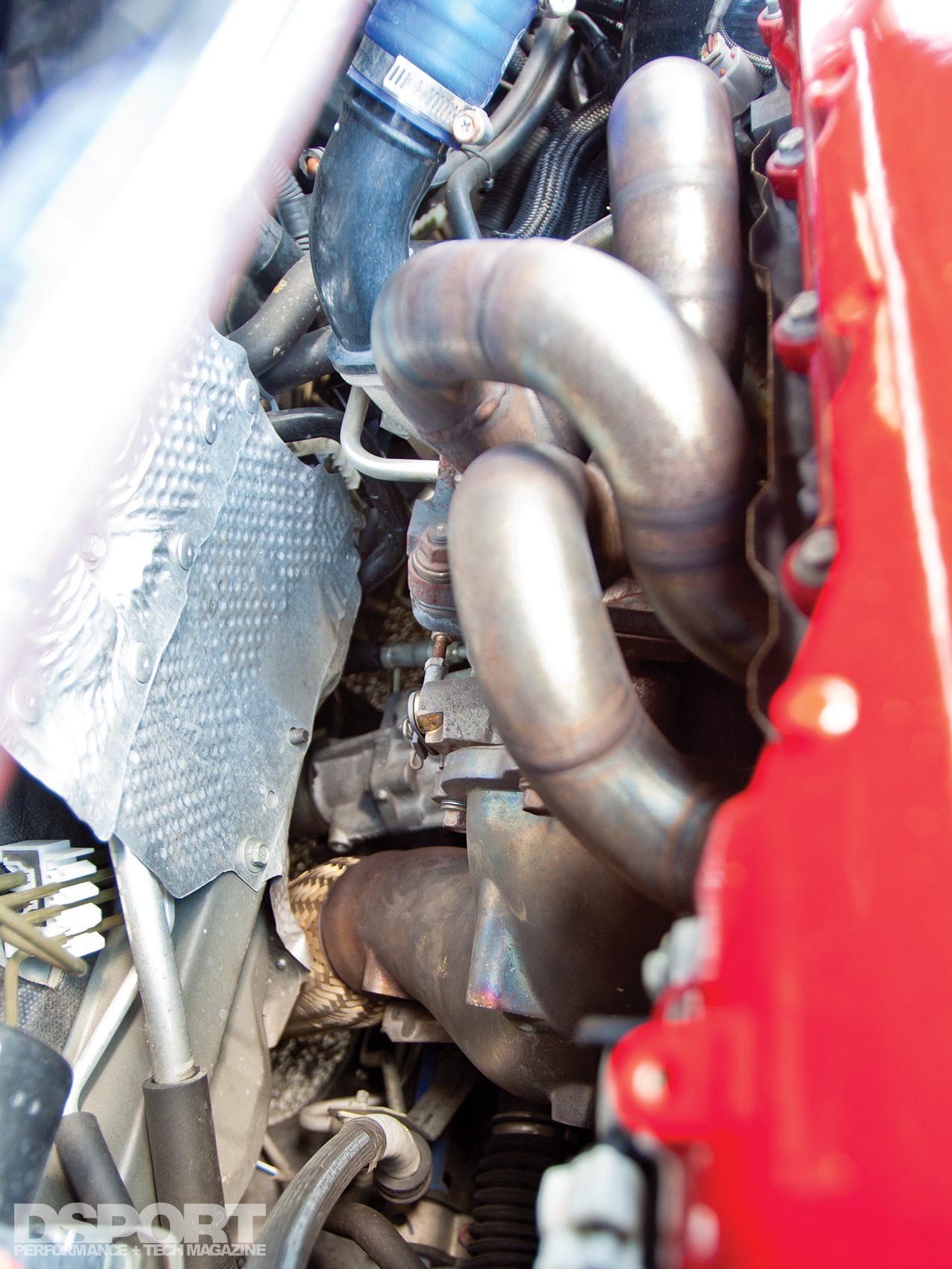 Since Diaz would drive the car on the street 99-percent of the time, he narrowed his turbocharger choices down to stock-replacement or “sport turbo” selections. These turbos would bolt in the factory location while supporting faster spooling characteristics and increased power at street-level RPM ranges. After some research, Diaz selected Forced Performance’s FP RED turbocharger. This turbo spools fast while producing more power than the stock turbo. A ball-bearing center section and twin- scroll configuration allow the FP RED to deliver the goods.