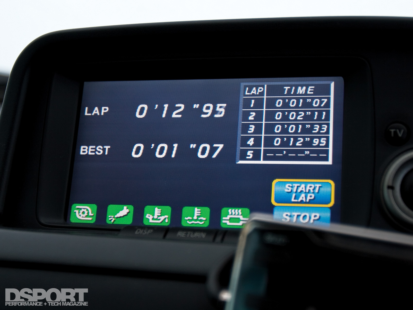 Fukuda equipped the Skyline with a myriad of electronics to analyze and improve its performance. The factory LCD screen that serves as a multi-function display has been enhanced with NISMO’s software upgrade. Featured improve- ments include a lap counter, boost pressure capacity increase to 2.0 bar, additional display modes, g-force meter and datalogging capabilities not available with the factory software. In addition, an A’PEXi Rev/Speed meter and a transmission housing temperature display monitor additional vehicle parameters that Fukuda records and compares.