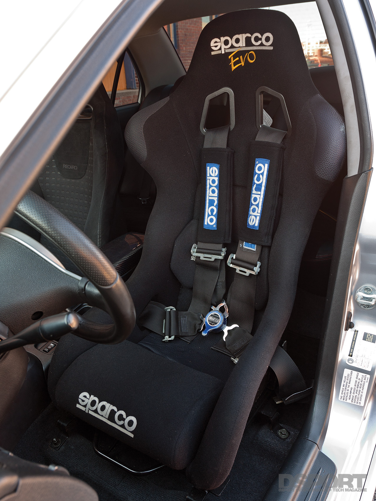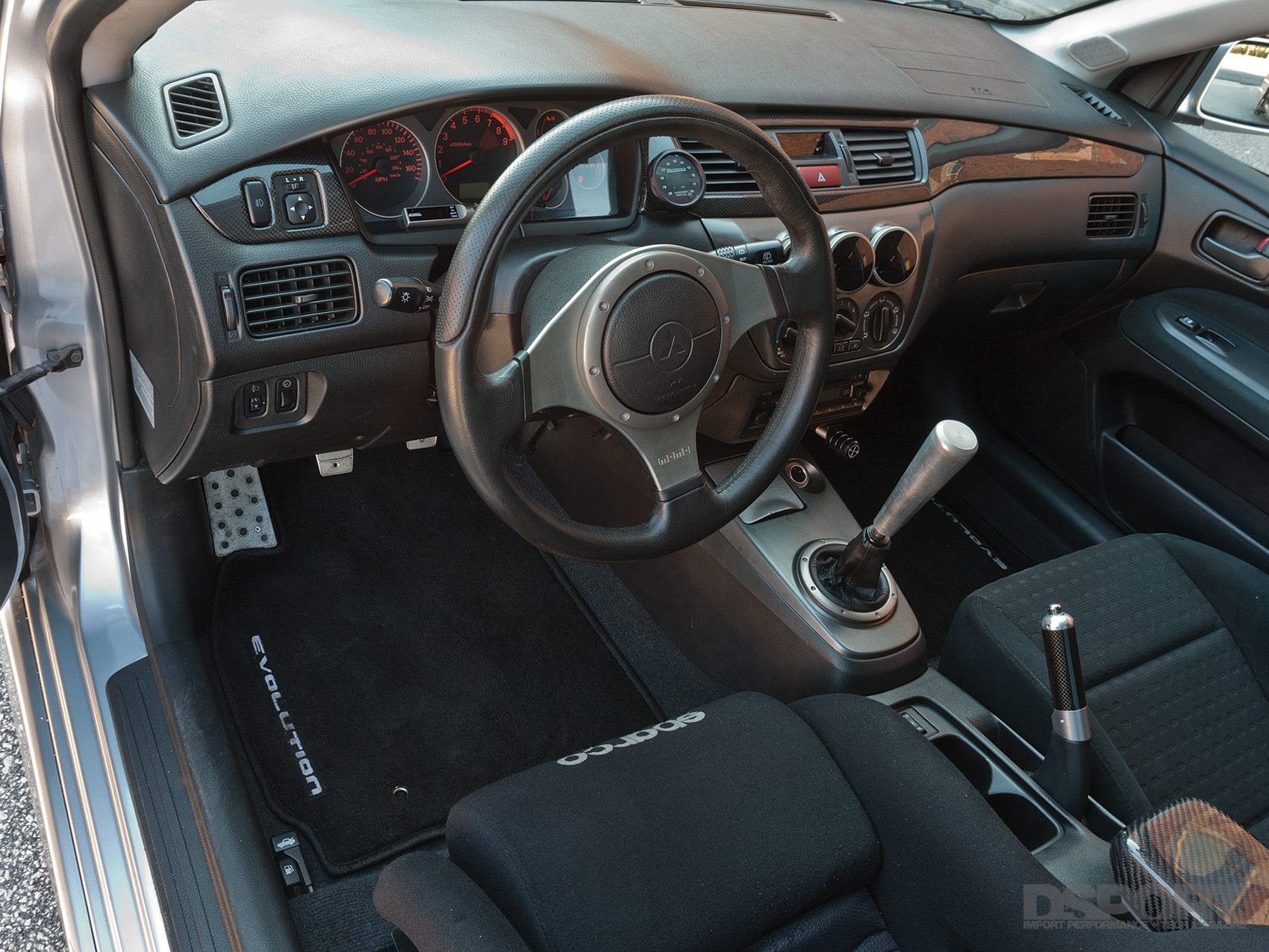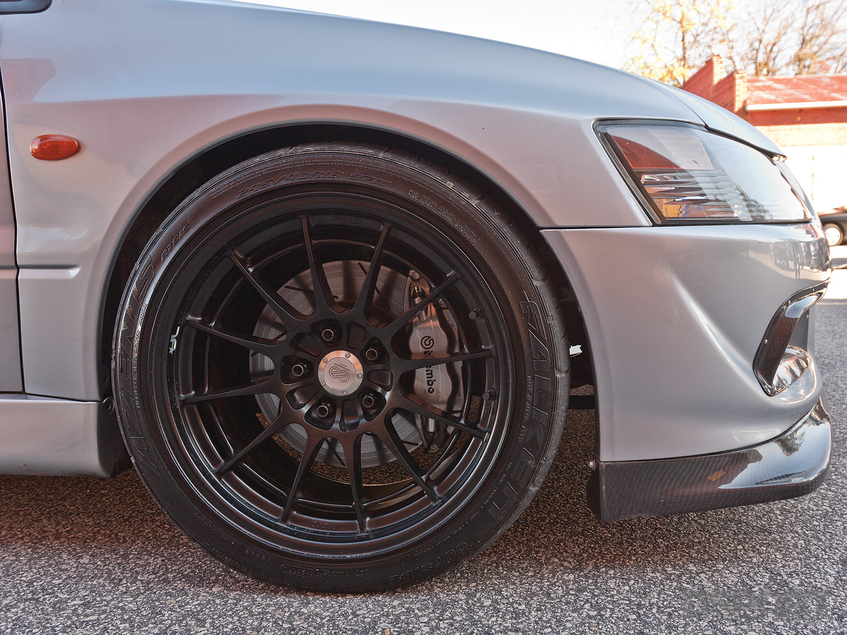 Now that the stroked 4G63 generated 775 horsepower to the wheels, attention could shift to suspension enhancements for improved handling. To start, a set of Fortune Auto 500 adjustable coilovers equipped with Swift springs replaced the factory dampers and coils at each corner. With the adjustable coilovers in place, the chassis could be corner balanced and adjusted to a lower ride height while permitting the rebound dampening to be tailored to Treadway’s preference. To help with the EVO’s notorious tendency to understeer, a Hotchkis rear sway bar helps to tighten up the back end, neutralizing this condition and helping the chassis rotate more easily around the turns. AFI adjustable lower control arms offer increased alignment setting for finer suspension tuning.