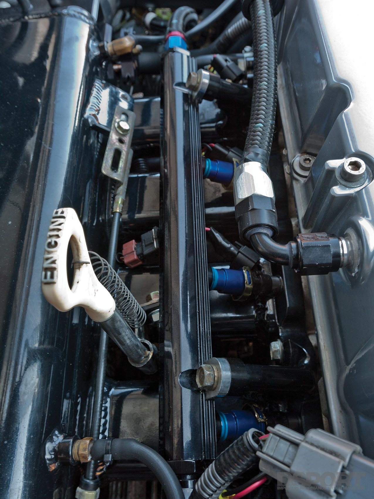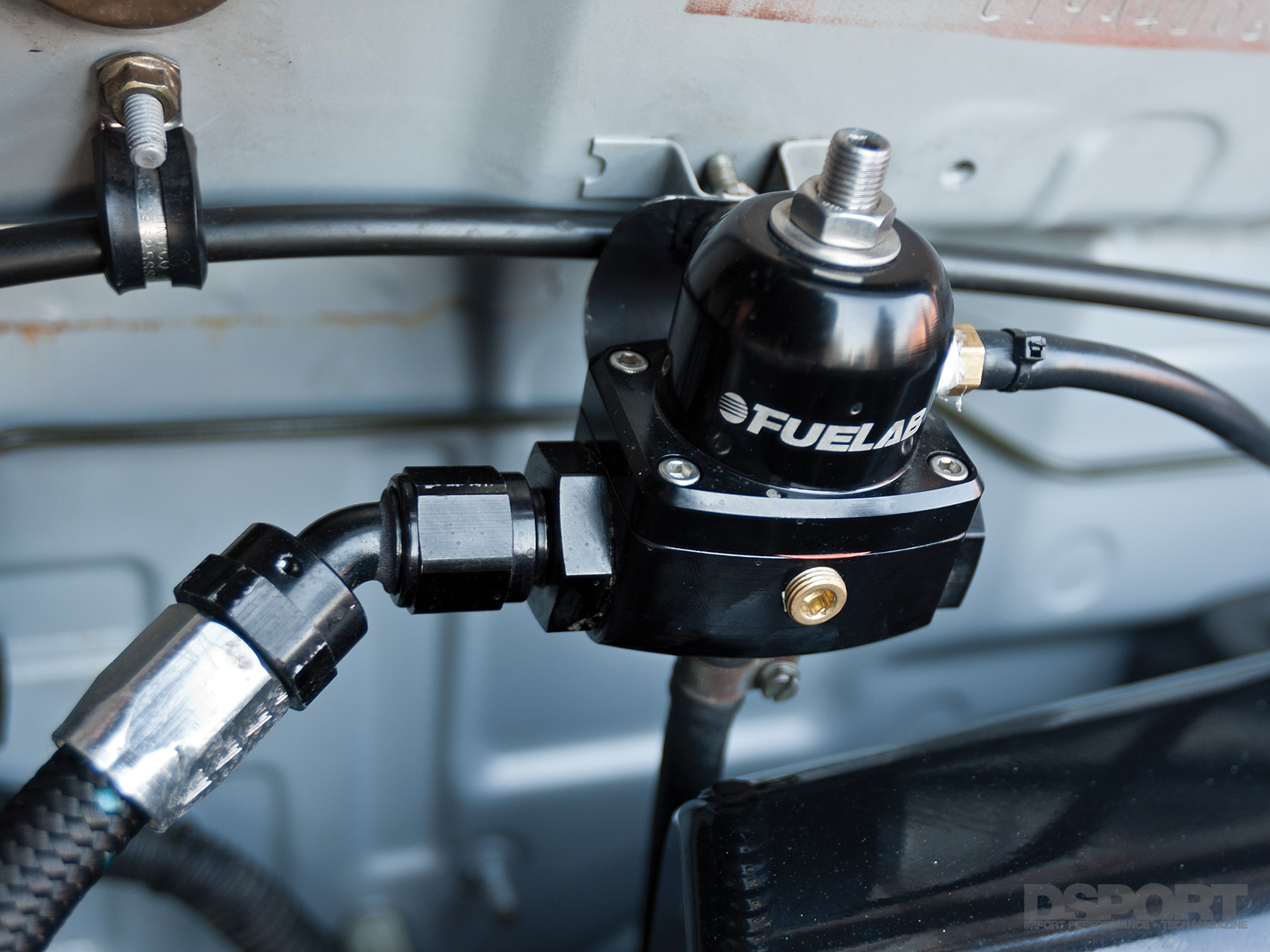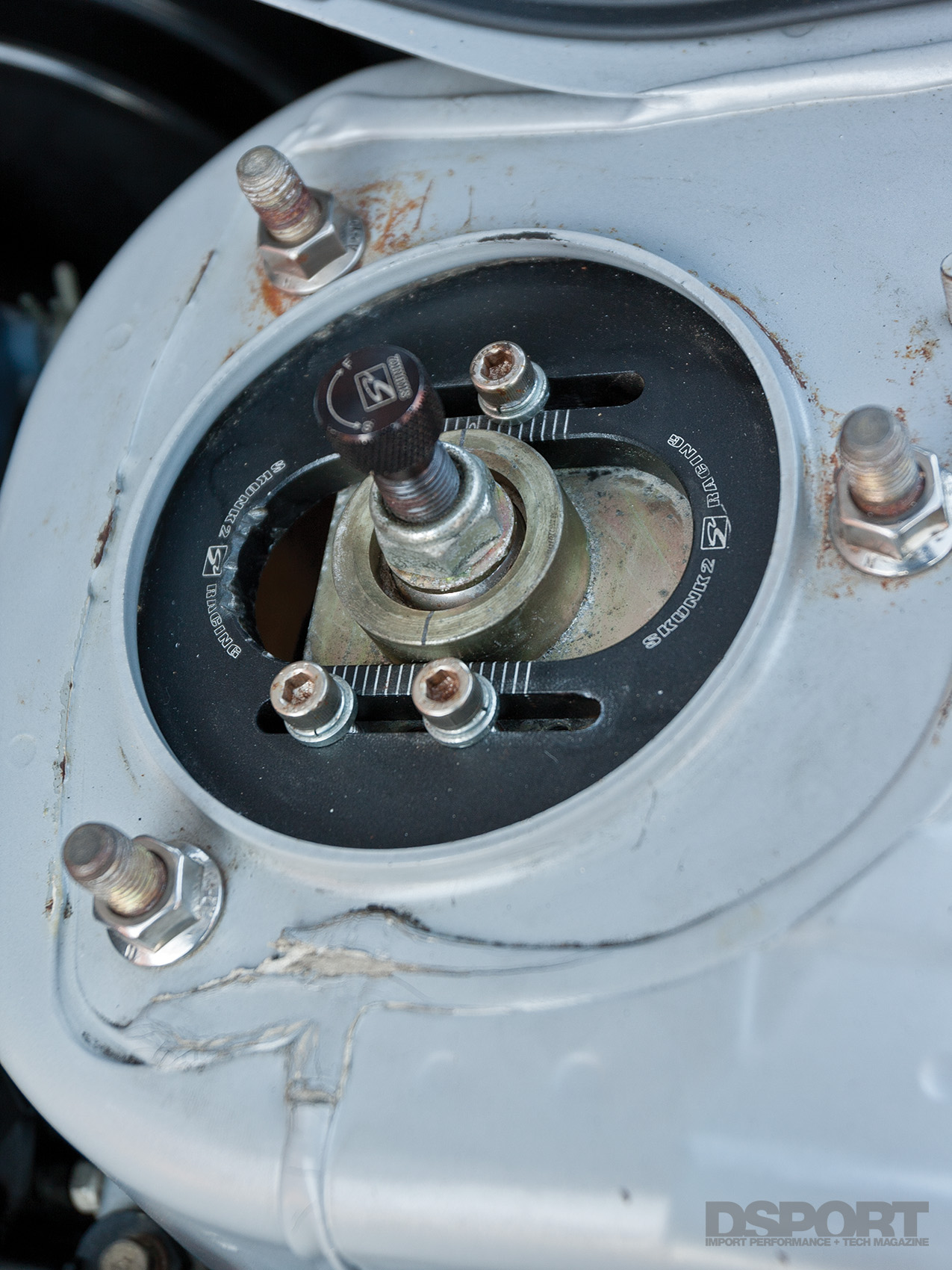 Now that the stroked 4G63 generated 775 horsepower to the wheels, attention could shift to suspension enhancements for improved handling. To start, a set of Fortune Auto 500 adjustable coilovers equipped with Swift springs replaced the factory dampers and coils at each corner. With the adjustable coilovers in place, the chassis could be corner balanced and adjusted to a lower ride height while permitting the rebound dampening to be tailored to Treadway’s preference. To help with the EVO’s notorious tendency to understeer, a Hotchkis rear sway bar helps to tighten up the back end, neutralizing this condition and helping the chassis rotate more easily around the turns. AFI adjustable lower control arms offer increased alignment setting for finer suspension tuning.
