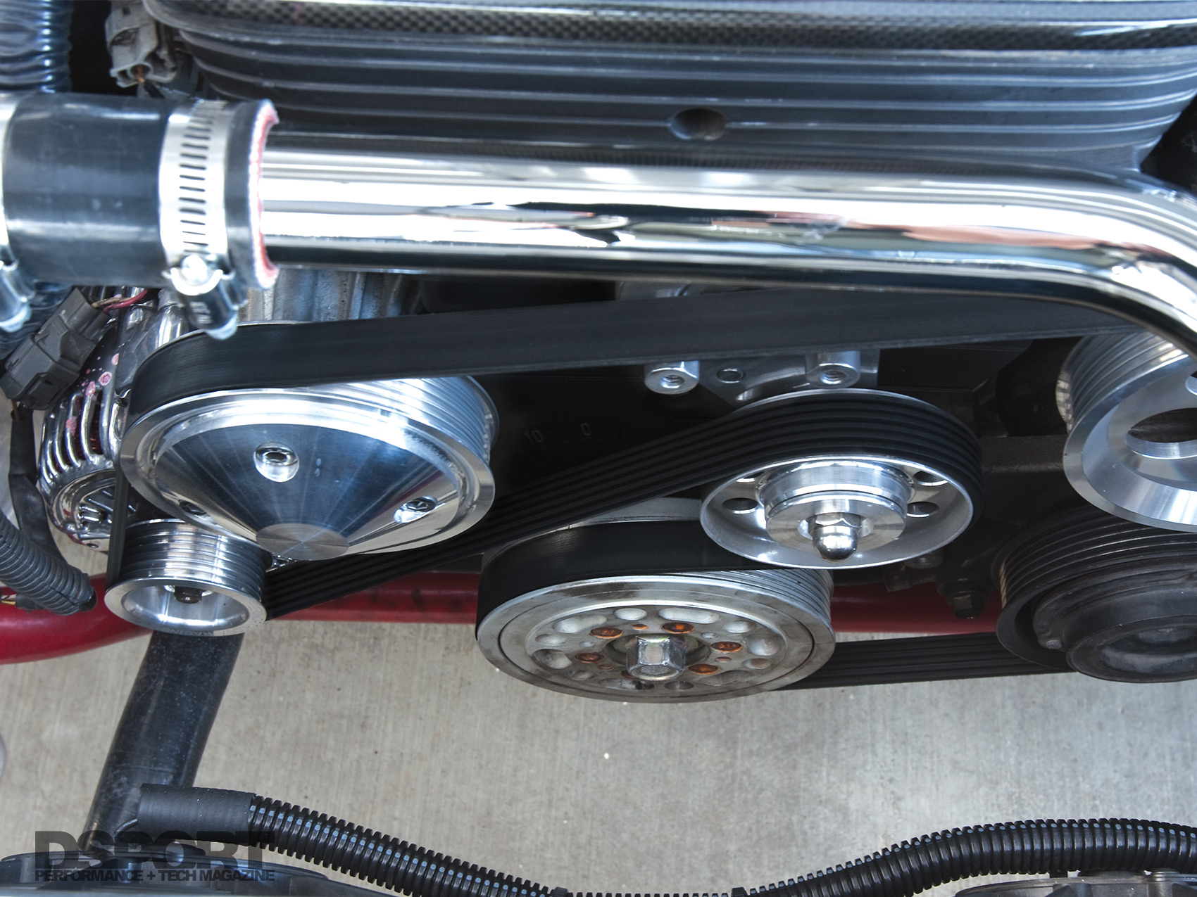 Harnessing nearly 1,100 horsepower requires significant driveline improvements. After testing several different clutch options, an RPS billet triple-carbon clutch proved to deliver the power while offering near-stock drivability. RPS claims that its lightweight billet clutch cover combined with the triple carbon-carbon disc setup can handle 1,200 lb-ft of torque. Once transfered through the clutch, the power is then fed to the factory Getrag transmission. A PR driveshaft links the transmission to the TRD LSD that splits power between the 12.5-inch wide HRE 597 wheels wrapped with 345/30R18 Michelin Pilot Sport tires on the street.