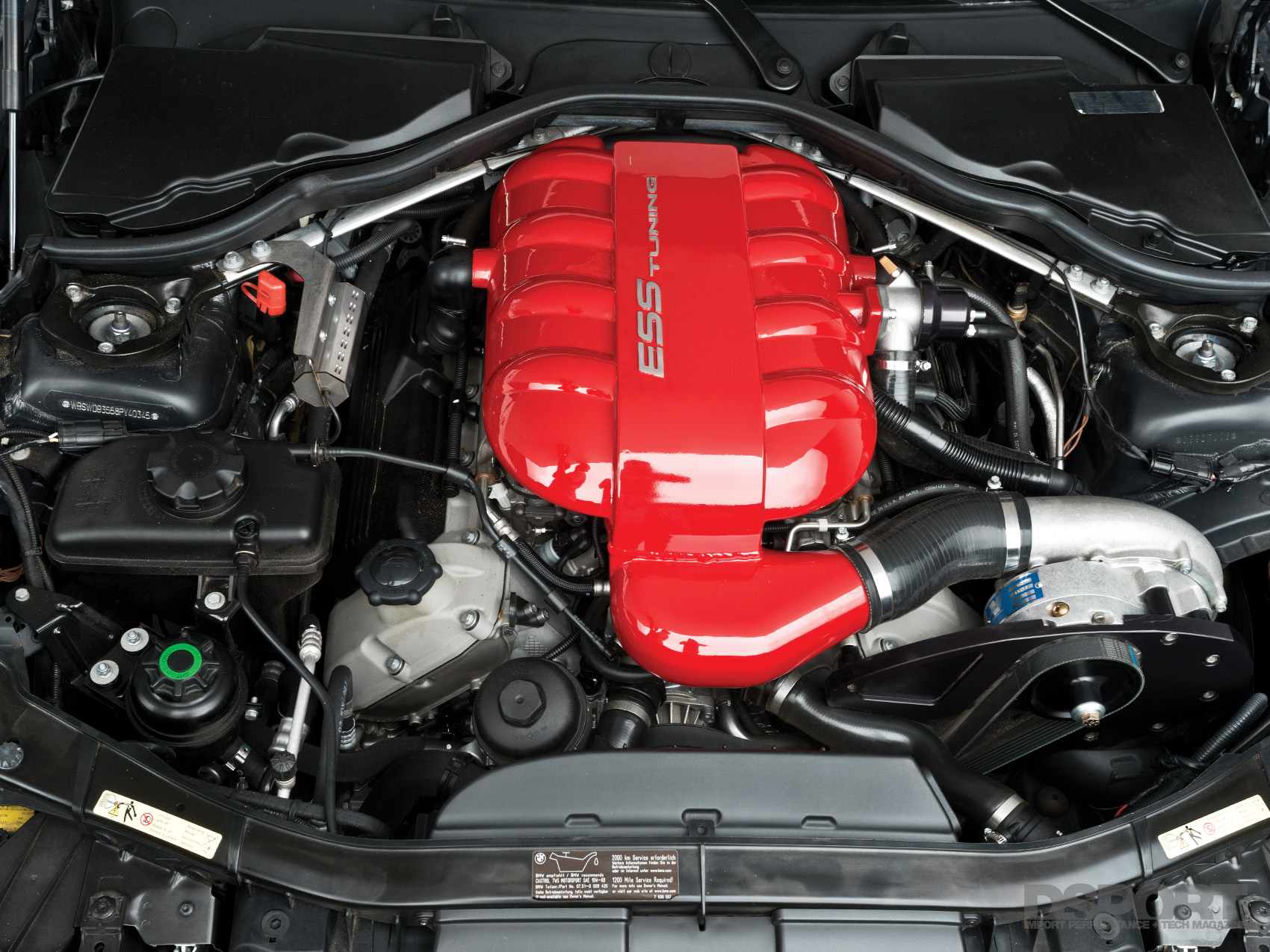 With the aesthetics of a racecar, the M3s yearned for more power to back up their looks. LWLBP turned to ESS Tuning, a Norwegian-based BMW tuning shop, to add boost to its widebody BMWs. ESS Tuning’s VT1-550 supercharger system consists of a Vortech V3Si supercharger, street-spec bypass assembly, uni-belt drive system, Bosch Motorsport fuel injectors, MSS60 ECU software, CNC hard-anodized brackets and a cast aluminum ESS intake manifold. The supercharger draws air through a K&N high-flow air filter. The self-contained supercharger, capable of producing airflow to support up to 775 horsepower is driven by a uni-belt drive system with OEM quality rollers. The compressed air rushes out of the blower and into the cast aluminum ESS intake manifold. The manifold features integrated velocity stacks. Once the air charge enters the combustion chamber, the high-flow Bosch Motorsport fuel injectors disperse a higher volume of fuel to mix with the additional air. To handle the optimization of fuel delivery, ESS utilizes its MSS60 ECU software. This software allows proper fuel and ignition control, optimization of the VANOS variable valve timing system and removal of the top-speed governor. To achieve maximum power and reliability, the BMWs took a trip to European Auto Source for final tuning on a Dynojet 224xLC Dynamometer.