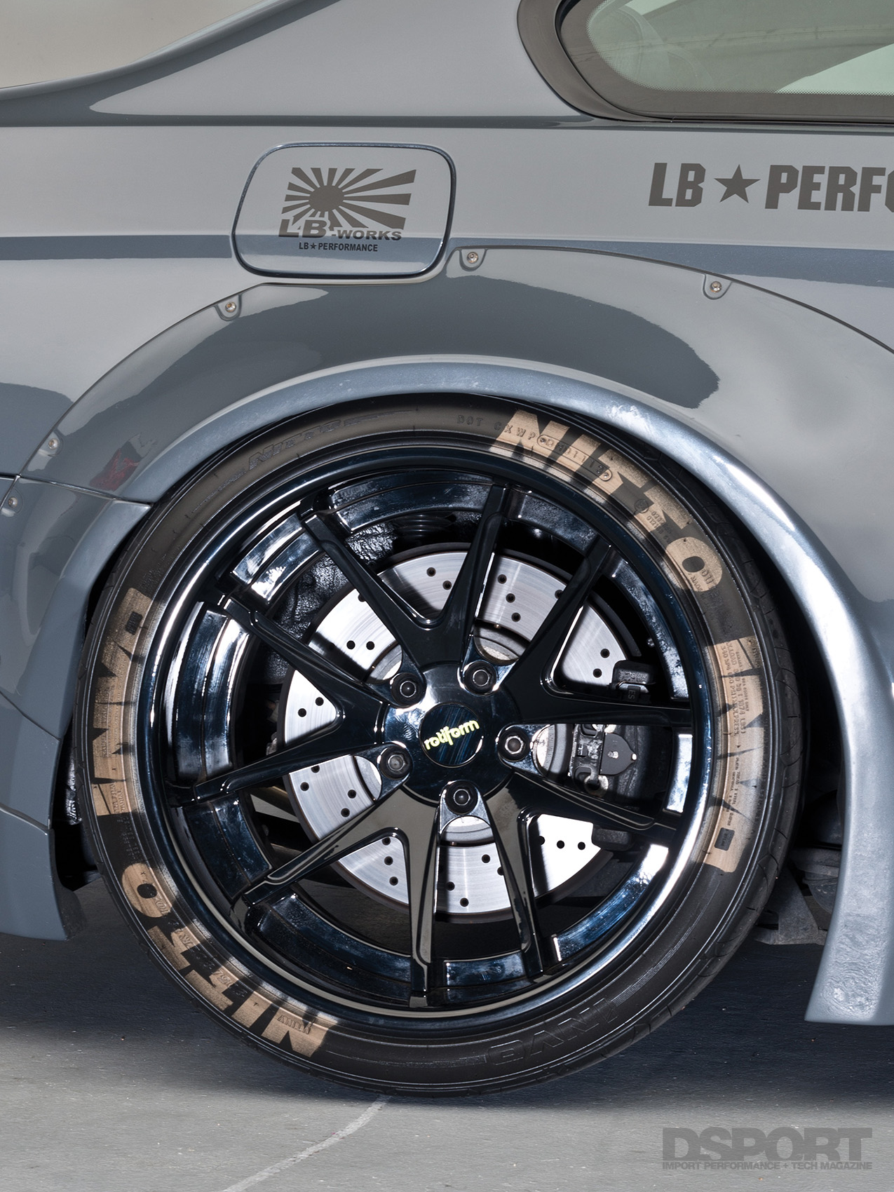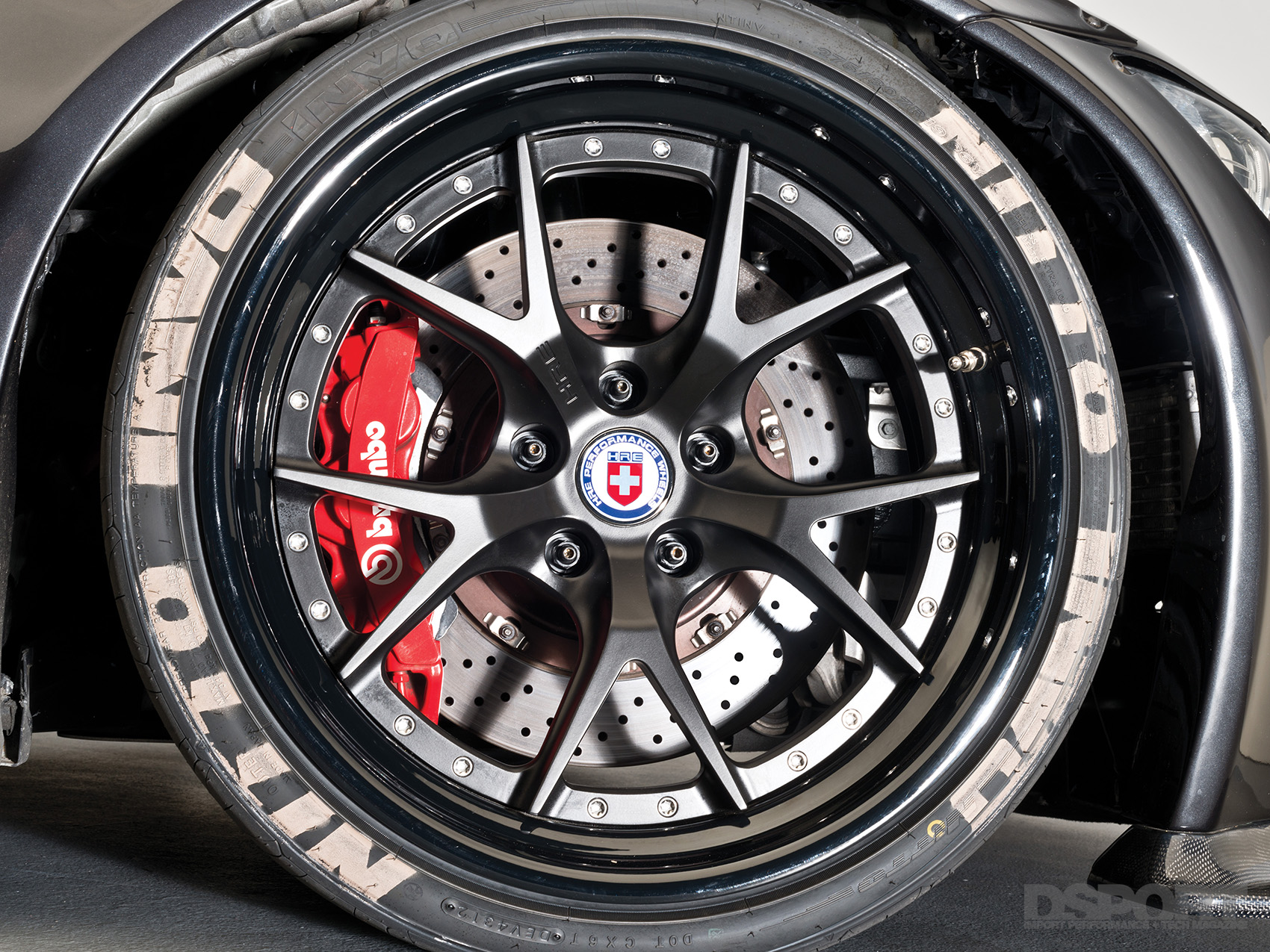 Kato’s BMW began as a completely stock white M3. In addition to the LWLBP widebody and Lamborghini Grigio Telesto paint, Kato added many other supporting modifications. Kato chose KW Suspension’s Clubsport 2-way coilovers to keep his M3 close to the ground. To help the vehicle stay firmly planted, a set of 19×10.5-, 19×12-inch Rotiform SNAs wrapped in 275/35R19 and 305/30R19 Nitto Invos filled the fenders. The aero kit and wheel combination gives the M3 a very aggressive stance. To match the bold aesthetic impact of the vehicle, Kato added an exotic exhaust note by mating a Mastermind X-Pipe to an Arqray stainless-steel exhaust.