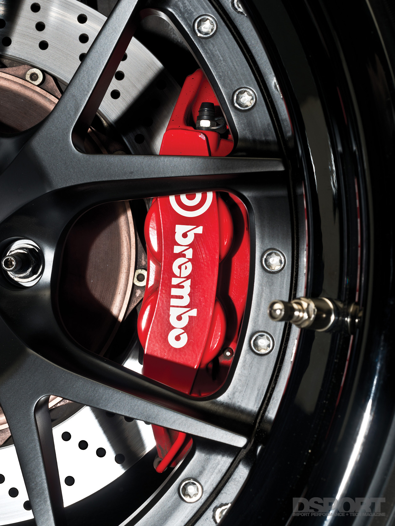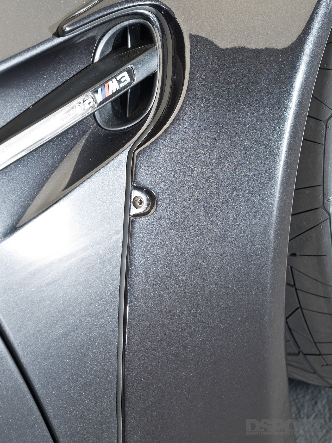 When approached with the opportunity to be one of the first LWLBP M3s in America, Bernardo Peña couldn’t resist. Like Kato’s vehicle, Peña’s M3 received the LWLBP widebody. To help the fenders sit precisely over the wheels, Peña went with a set of KW Suspension Variant 3 coilovers. From there, the differences between the vehicles become apparent. Unlike Kato, Peña decided to build his M3 more in line with a racecar. This meant bucket seats, a roll bar, and a big-brake kit. Inside, Sparco Pro 2000 racing seats give the cockpit a more performance-oriented feel. To complement the bucket seats, Peña chose Sparco six-point harnesses to replace the factory safety restraint system. An Autopower roll bar provides the mounting location for the racing harnesses and adds stiffness to the chassis. A set of Brembo binders comprised of monoblock six-piston front, four-piston rear calipers clamp huge cross-drilled 380mm rotors. These Brembo brakes help bring 19-inch HRE S101s wrapped in 275/35R19 and 305/30R19 Nitto Invos to a halt.
