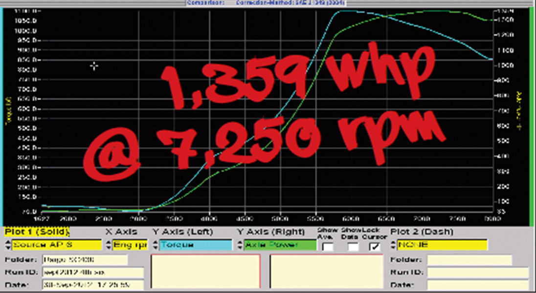 | Peak Horsepower (@ RPM): | 1,359 whp @ 7,250 RPM |