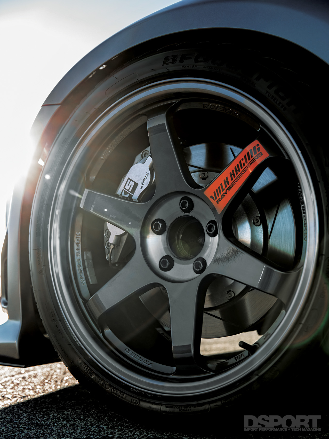 This had been far from a straightforward build, and fate was not through challenging Spielman’s resolve. As the vehicle neared completion, thieves set the build back another step when they stole his bright orange, powder coated Volk Racing TE37 wheels. The Z was parked inside the apartment complex parking structure at the time it was fleeced. Fortunately, Spielman sourced another set of TE37s, finally getting the build back on track.