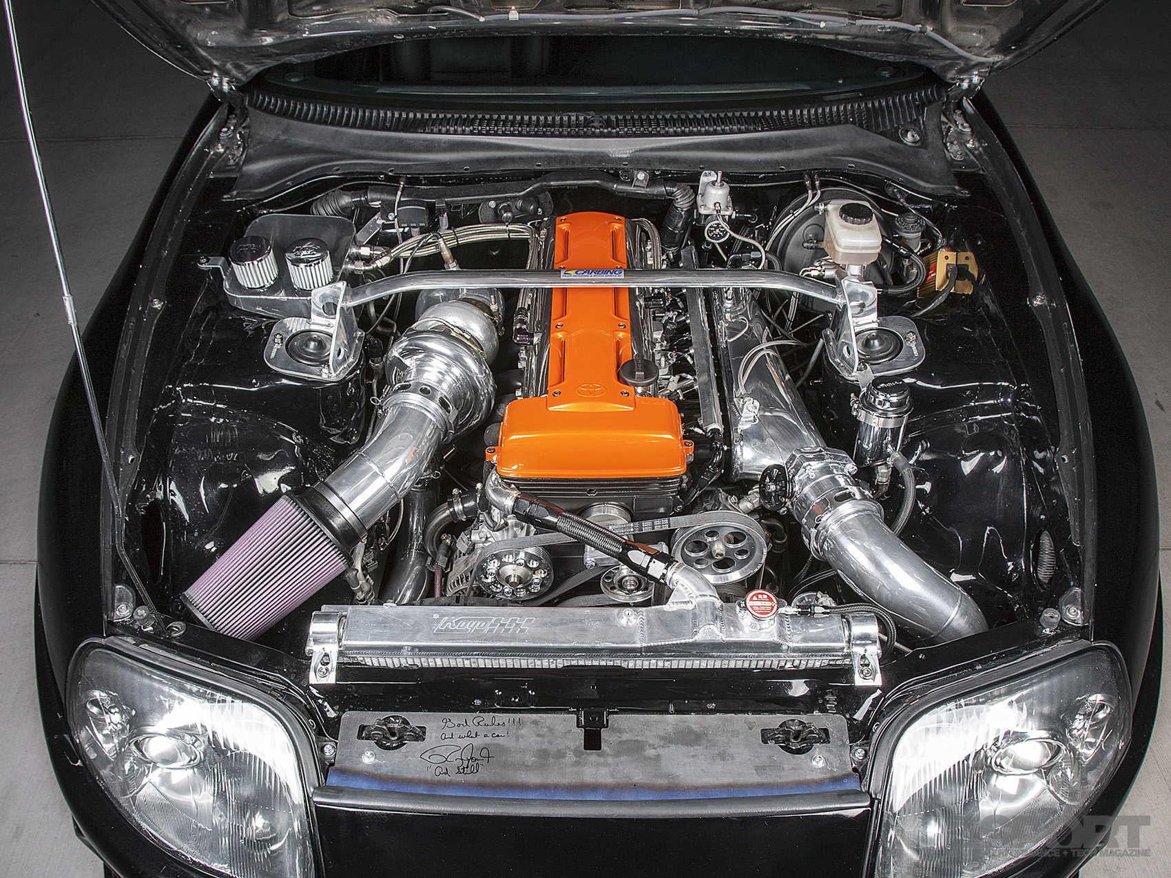 [pullquote]WITH THE RIGHT COMBINATION OF PARTS, THIS PLATFORM CAN BE SET UP TO DO IT ALL[/pullquote]Nearly seven months went by while the Supra progressively came together. At this point, Okawa hadn’t even driven the car when Insane Speed asked a favor of him. He recalled, “When the build was completed, Insane Speed asked if the car could be used for a quick demo ride. For all their effort, I didn’t see any harm in allowing them to take a customer for a quick spin. This customer turned out to be boxing legend Roy Jones Jr., who was kind enough to autograph my radiator diversion panel.” As Insane Speed finishes up a few custom touches before shipping the car to Hawaii, Okawa beams with pride and anticipation. He concluded, “What sets the Supra apart from other cars is that with the right combination of parts, this platform can be set up to do it all. It can make amazing amounts of reliable power, handle amazingly well with an acceptable ride quality, brake as well as any performance car, and it can still be comfortable enough for daily driving.” “When that medical emergency came up,” Okawa admits, “I didn’t hesitate to let go of my first Supra. But I often wondered if I would ever get the chance to build another one to that same caliber. I am so grateful for having the chance to build this car and to build it the right way. It is everything I could have hoped or asked for, and it feels really good to be a part of the Supra community once again.” While second chances don’t always present themselves, Okawa got his second Supra and his second feature in DSPORT at the same time.
