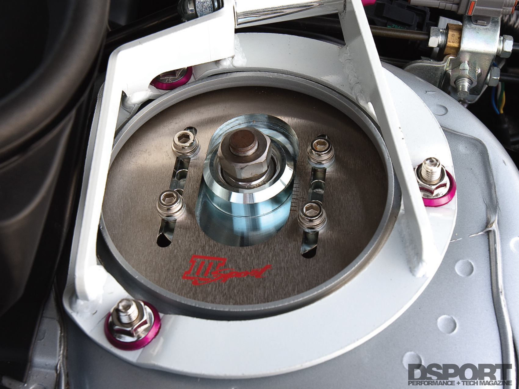 Having a sizeable power increase called for better reigns to control the wagon. Happy with the outcome of the power adders, Brian selected HKS again for a set of Hypermax III Sport coilovers to lower the chassis and sharpen handling. The Hypermax III Sport coilovers provide independent ride height and spring preload adjustment. The bottom shock mount allows for independent ride height and corner balancing adjustments without affecting spring preload. HKS Kansai strut braces link the shock tower tops, preventing the chassis from flexing due to the stiffer spring rate. To take advantage of these new suspension components, SSR Type-F 18×9.5-inch wheels wrapped with Toyo Proxes T1R tires increase the contact patch by an inch at each corner. The combination of a stiffened chassis and wider footprint provides the improved controls the power increase begs for.