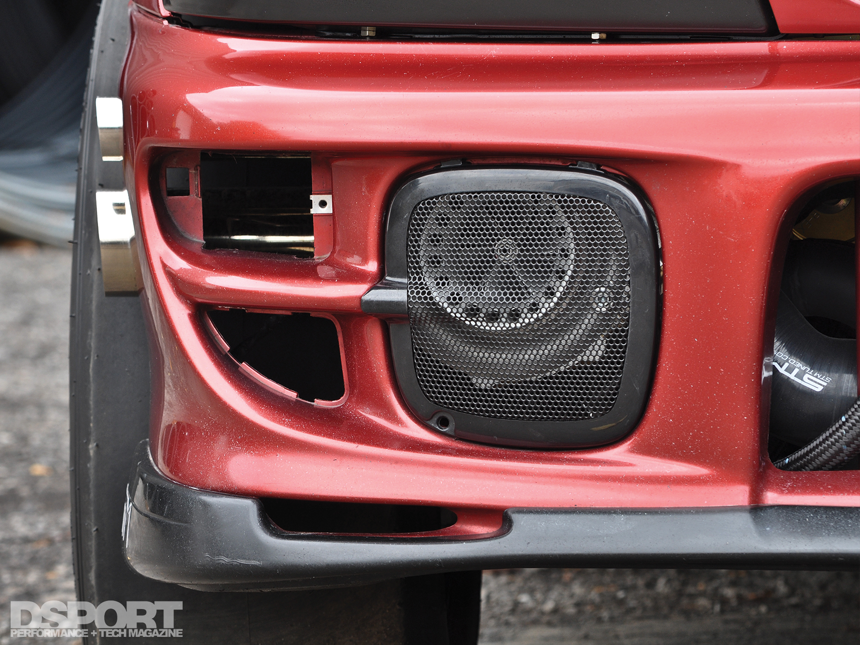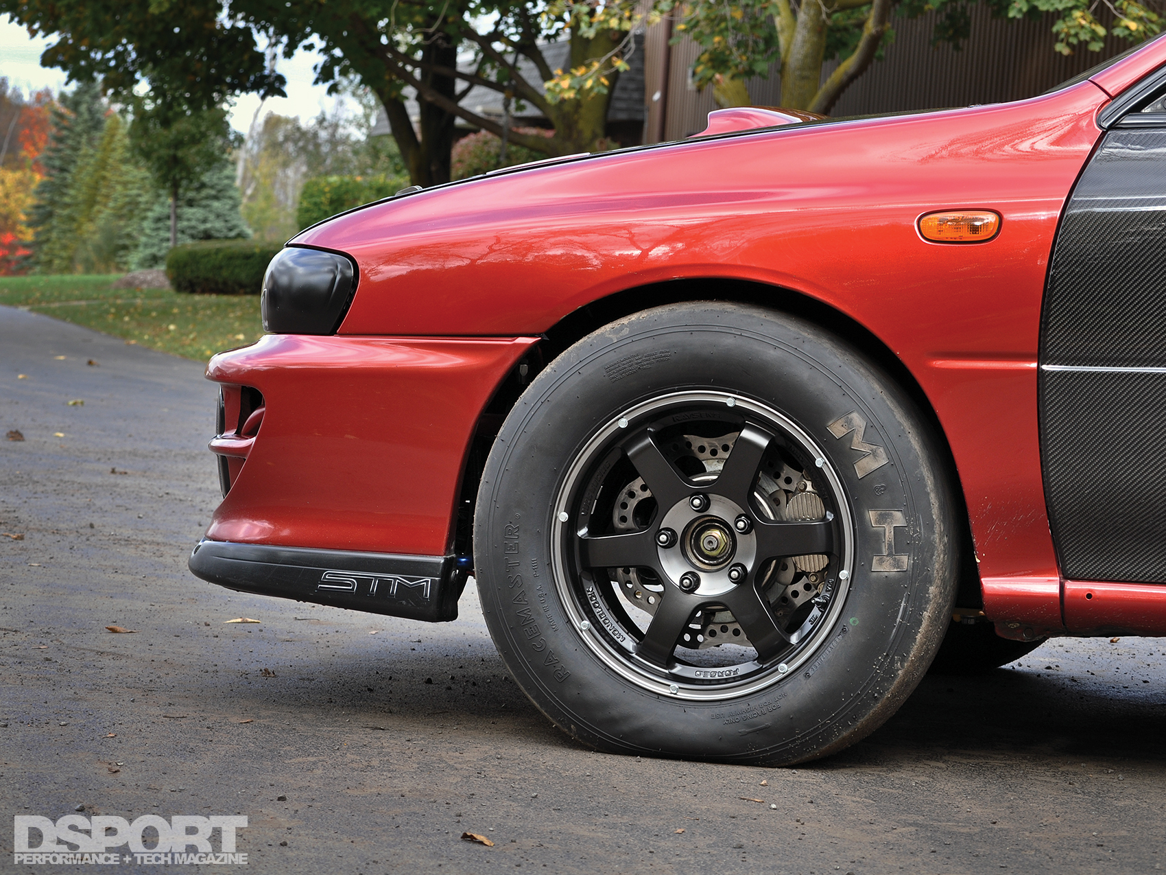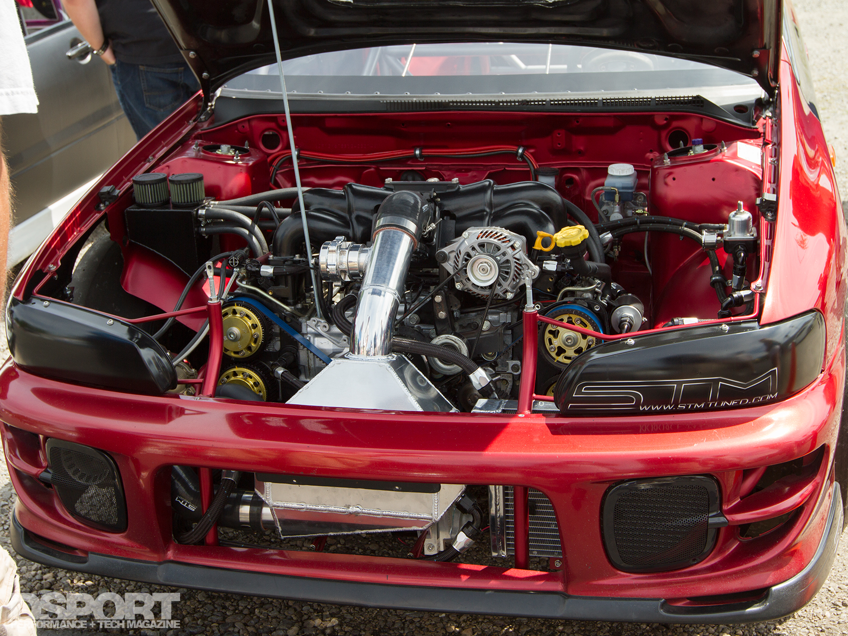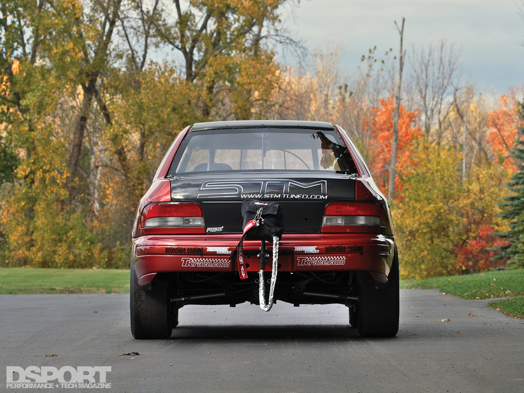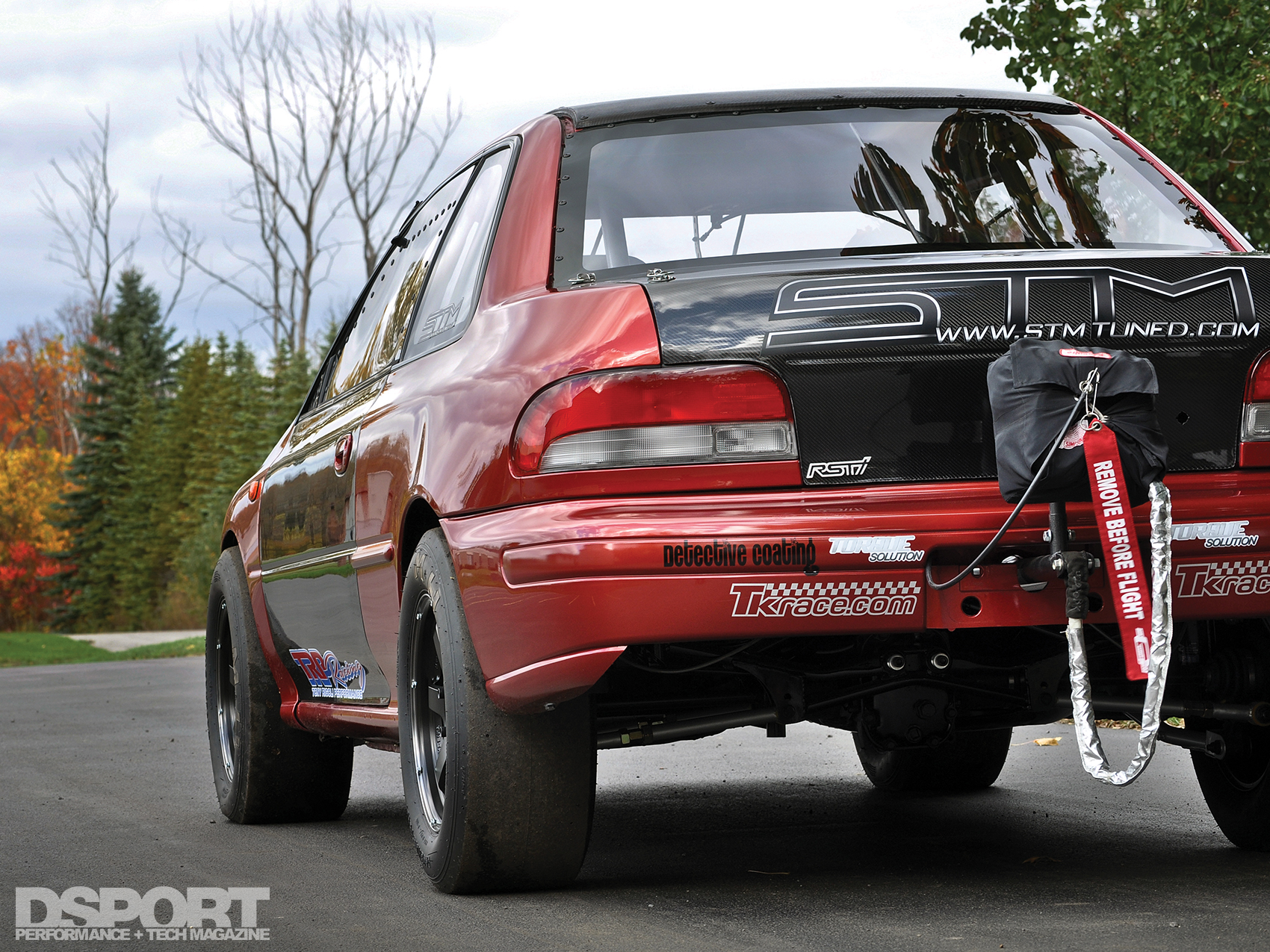 To harness the nearly 14 percent extra torque being transferred through the driveline, Marcus made changes to the RS’s rolling stock. Seeking more traction without losing the “stock” wheel and tire appearance, he decided to abandon his previous 16-inch wheel and tire combination in favor of a set of 15×8-inch Volk Racing TE37SLs fitted with larger M&H slicks. He had the wheel lips drilled so that the tires could be bead locked to the rims. Another critical upgrade was to change the rear springs, which had proven to be too stiff. This resulted in rough handling; no squat and the car would skate all over the track. Marcus swapped out the D2 rear springs for STM-spec Swift Springs. This further helps with a proper launch, now that the chassis squats and stays planted straight down the track.