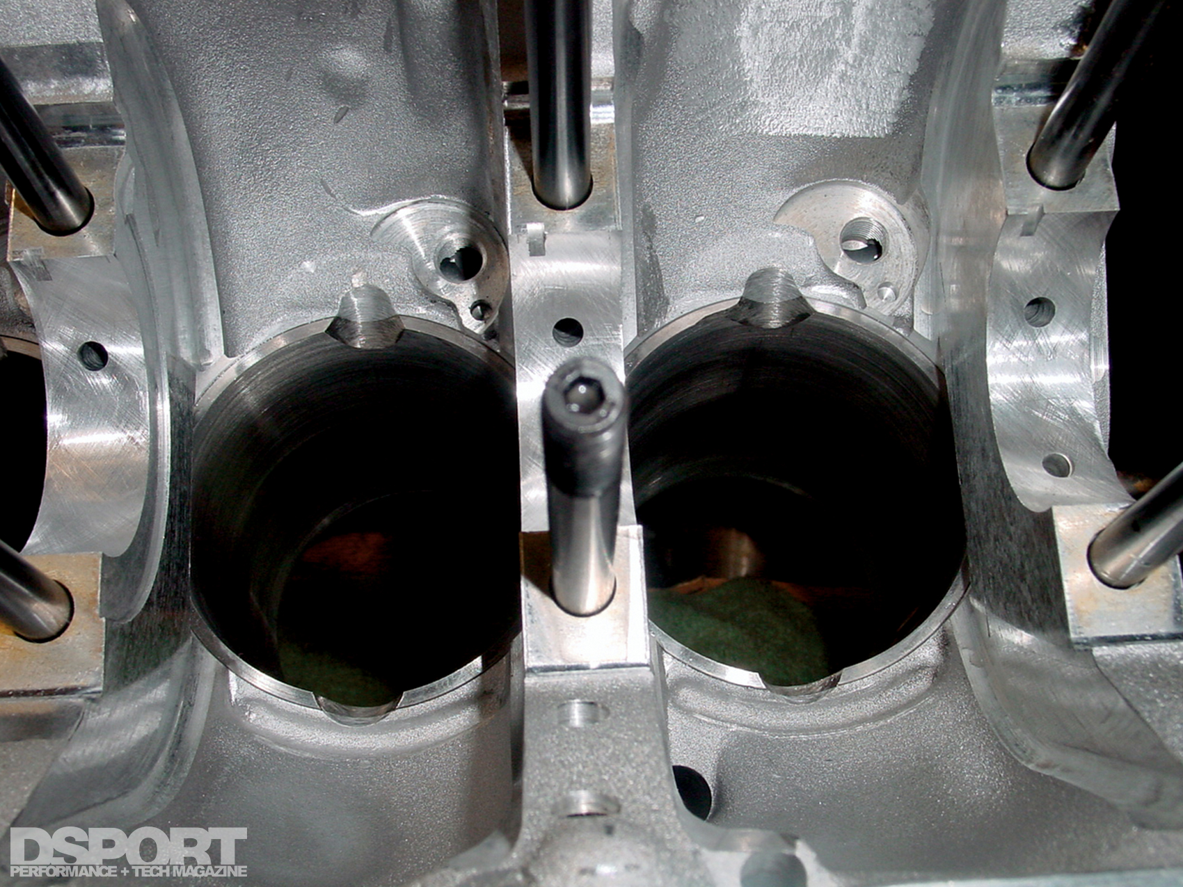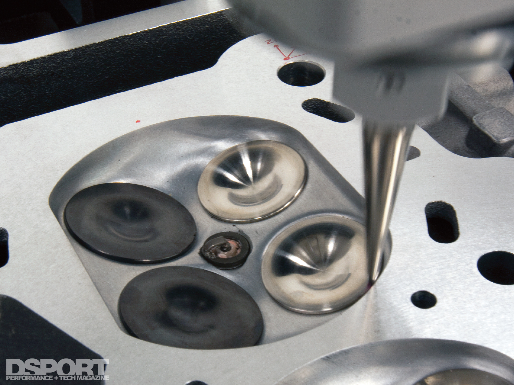 In our last SR installment of the KA vs. SR battle series (Issue #90, June 2010) we sent a brand new SR cylinder head core to TOMEI POWERED (TP) in Japan. There, TOMEI POWERED’s cylinder head specialist Mr. Tahara put the head through the TOMEI POWERED Genesis Phase One and Two cylinder head program. Phase One involved replacement of the valve seats, upgrading to Phosphorus Bronze valve guides, +1mm oversized Supertech valves, Type A valve springs and titanium retainers. Phase Two added solid lifters (to replace the hydraulic units), shims, 270-degree PROCAMS and rocker arm stoppers. Solid lifters are not adjustable, requiring Tahara-san to select the correct thickness shims instead to achieve proper valve clearance. However, converting to solid lifters reduces the chance of a rocker arm being thrown from its position between the valves and the cam lobes, allowing for a higher redline. We added TOMEI POWERED rocker arm stoppers as a further measure of insurance. For our SR, we asked Mr. Tahara to reshape and cc the combustion chambers in anticipation of a 90mm bore, which is 4mm greater than the factory SR20 bore size.