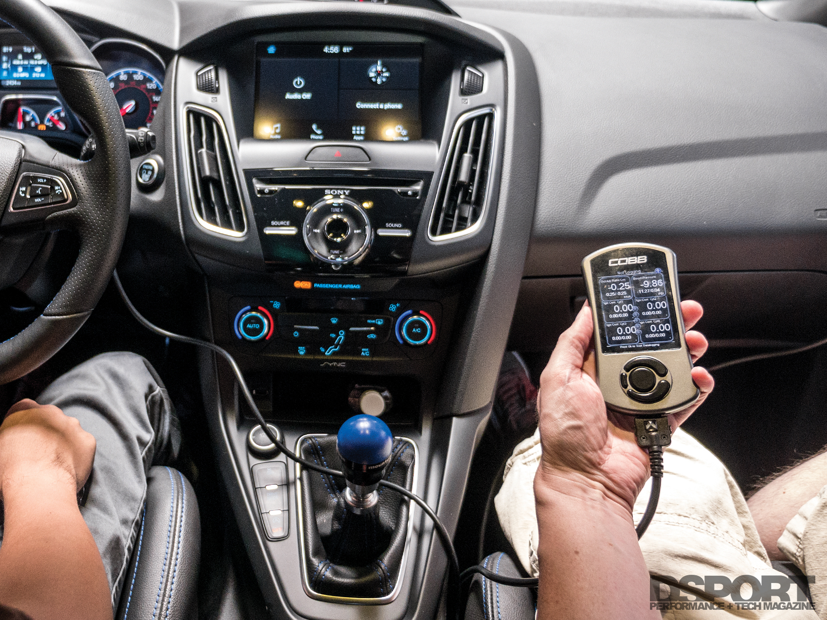 After we evaluated the Focus RS in factory trim, the mountune engineers equipped the car with the B5 Package, designed to further liven up the car’s performance with simple bolt-on components. This kit utilizes a high flow intake, air recirculation valve, intercooler charge pipe kit, roll restrictor and Cobb’s Accessport V3 ECU upgrade with mountune’s custom calibration. Mountune also equipped the car with its optional intercooler and quick shift to add to the benefits. Beyond the power advantages, mountune includes programming options like launch control customization, flat foot shifting, ethanol support, gear-based torque limiting and more. With the Focus RS equipped with the B5 Package, intercooler and quick shift, we took to the streets once again.