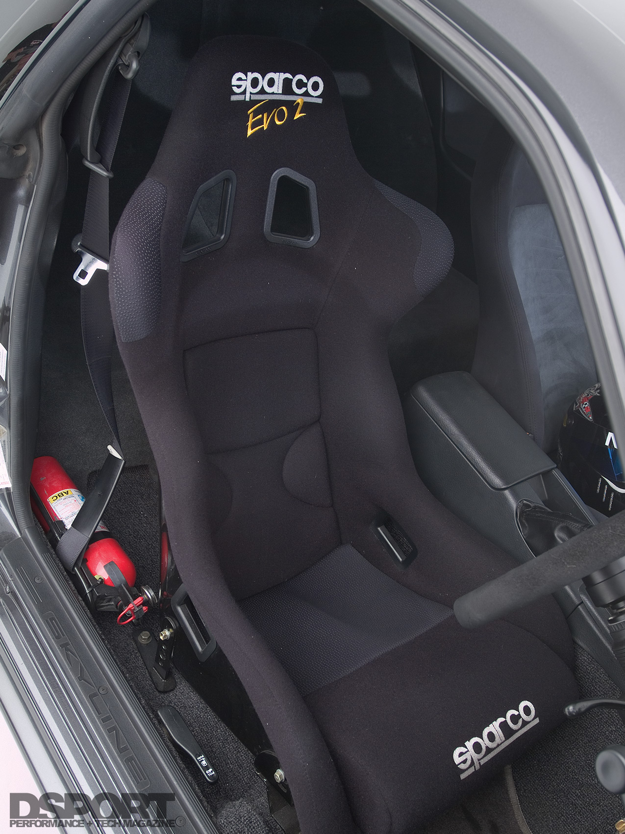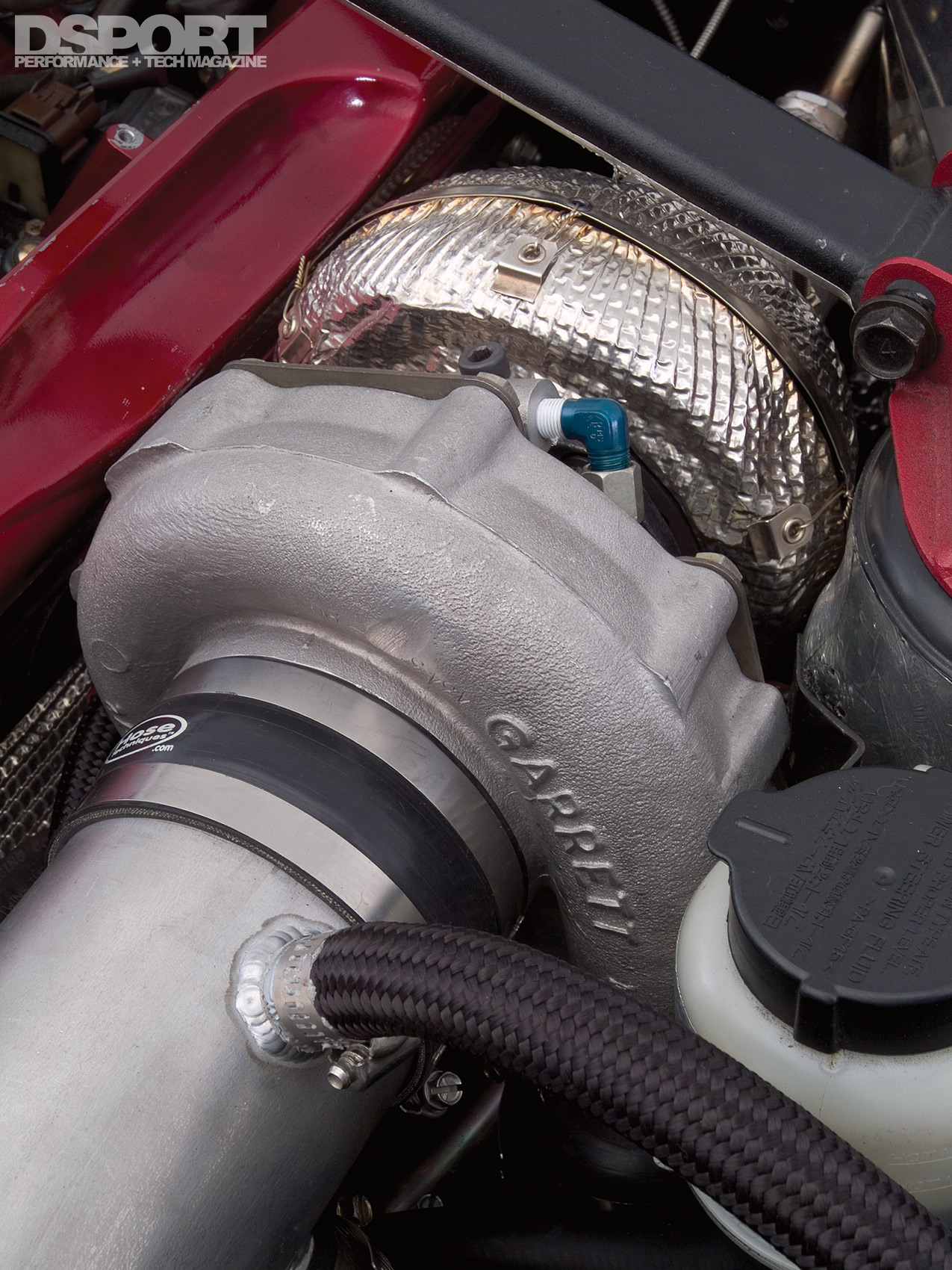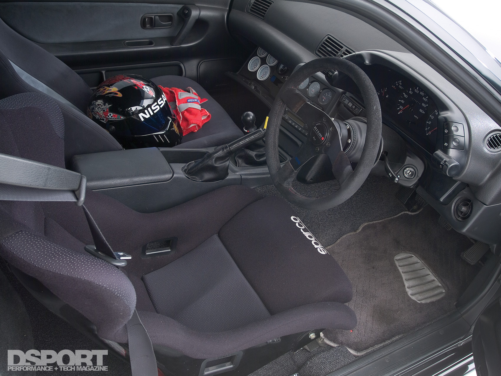 Of course, doubling the horsepower of a car without addressing the braking system would be irresponsible. To be sure that this Nissan could pull on the reins, a set of StopTech brakes was installed at all four corners. A 355mm rotor with four-piston caliper setup was chosen for the front, while a 328mm two- piston caliper solution was chosen for the rear. According to Steve, this Stop Tech setup outperforms the aftermarket F40 setup he used in the past (333mm front / 300mm rear rotor setup).
