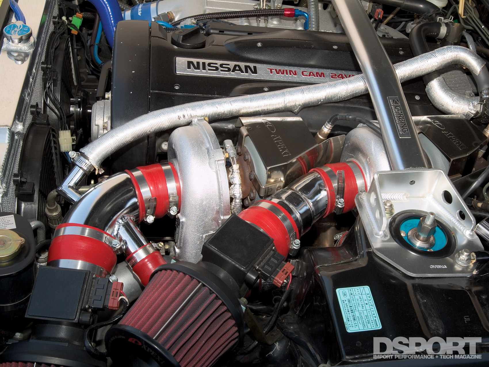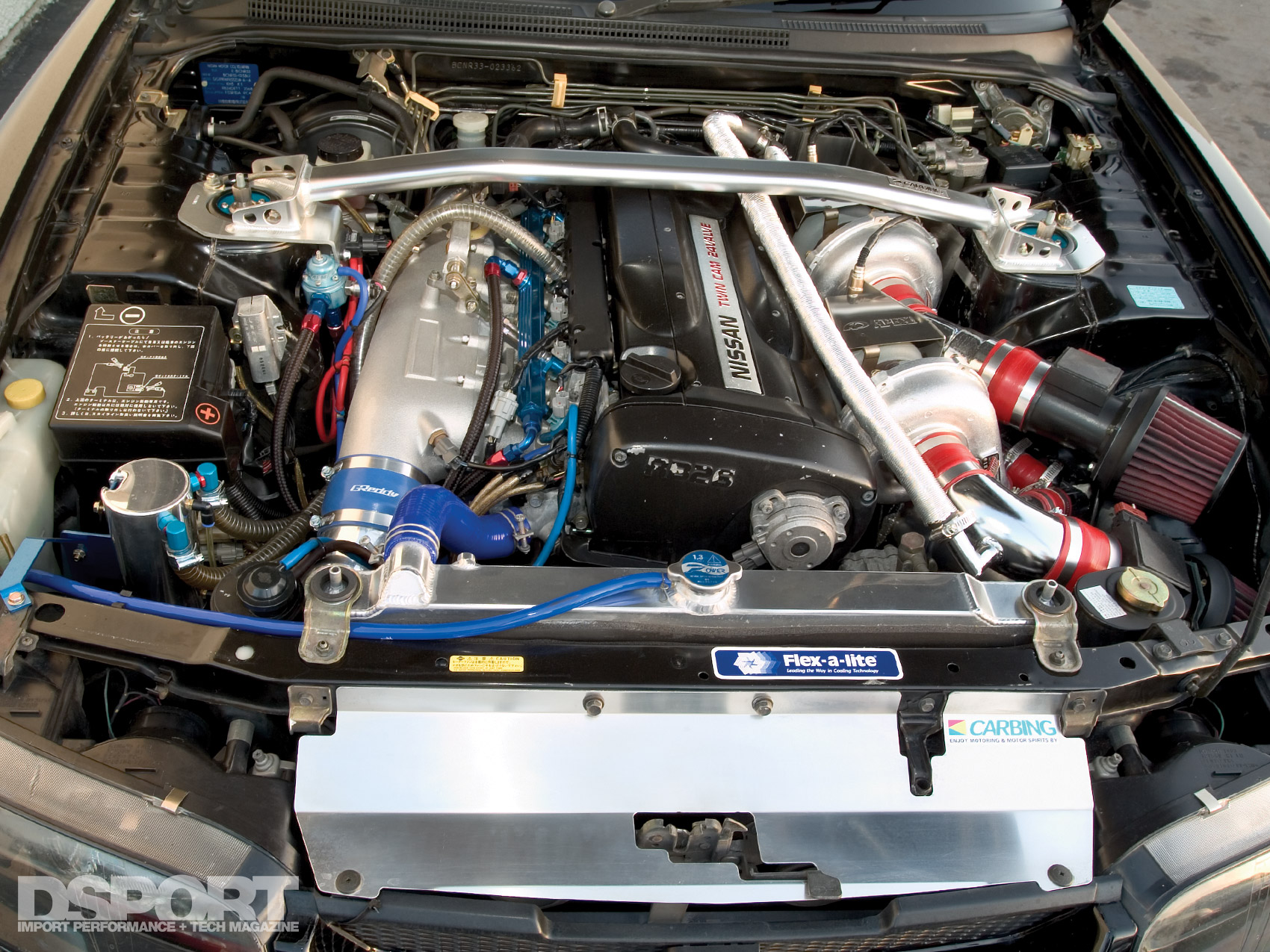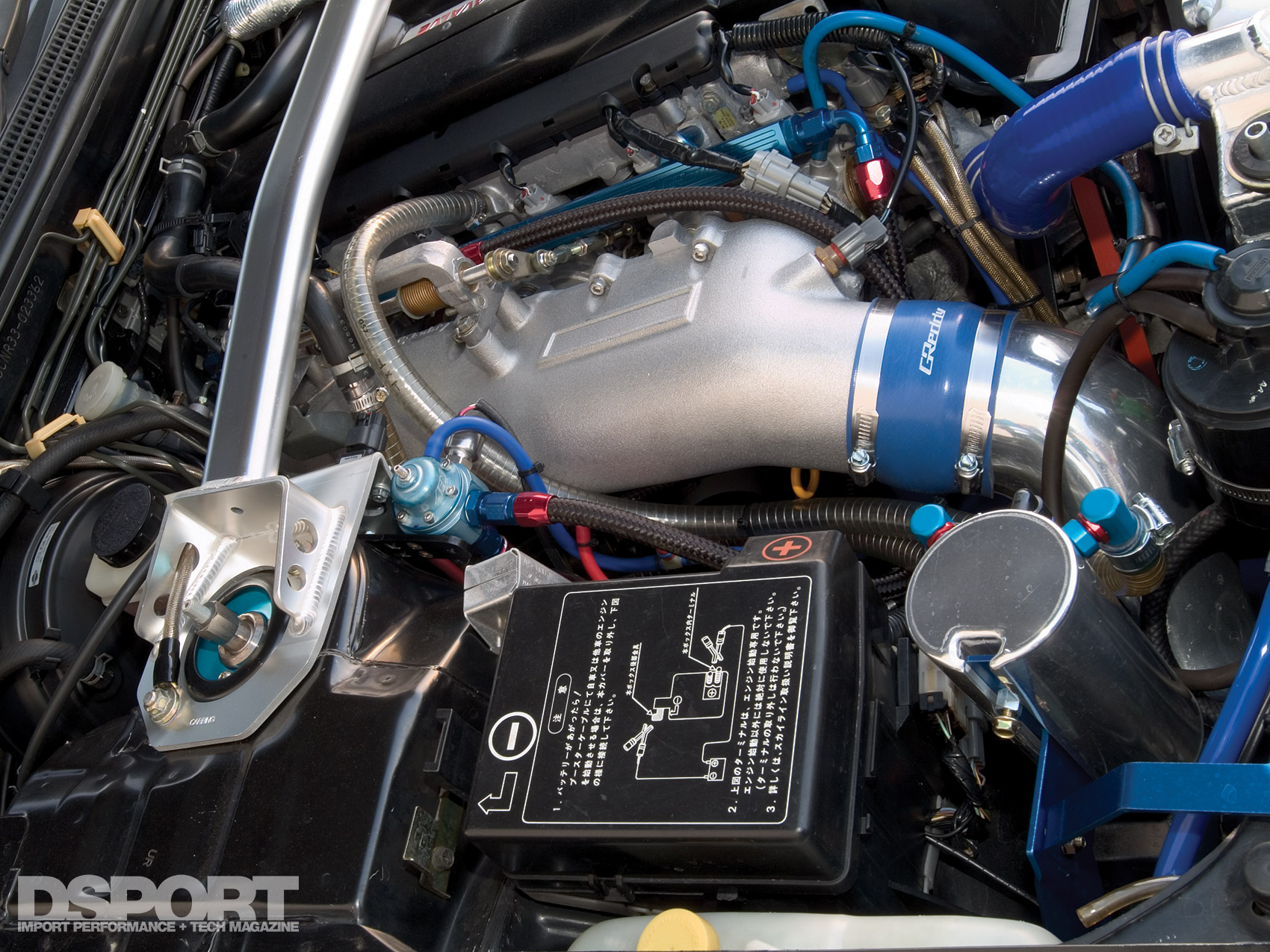 Another possible fix would be to eliminate the Mass Air Sensors and convert the vehicle to D-Jetro or Speed- Density. A’PEX Integration offers a number of its Power FC plug-and-play engine management systems in both L-Jetro and D-Jetro applications. The GT-R is one of the applications where both systems are offered. The majority of high-horsepower, RB26 powerplants in Japan have been converted to D-Jetro. D-Jetro conversions will generally provide improved throttle response while sacrificing a small amount of the ECU’s ability to compensate for air-density and air-flow variations. What we like about this solution is that anything goes on designing an air intake system. With the air flow meters in place, the size of the air flow meters dictates the maximum size of the inlet piping to the turbocharger. Without air flow meters, the sky’s the limit.