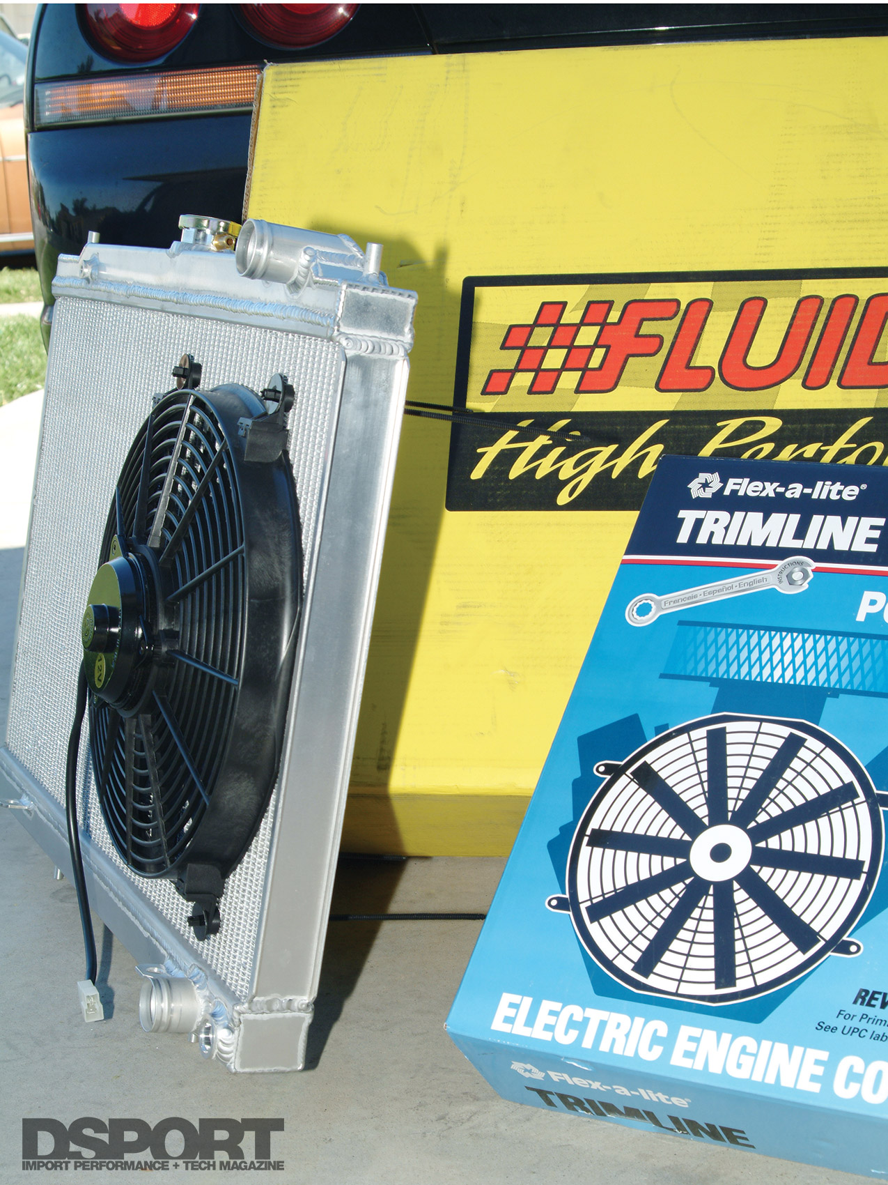 Installation of the Fluidyne radiator and FAL fans was very easy. All the parts fit extremely well. We decided to locate the fan relay and fuse assembly in the factory fuse box to keep the wiring as clean as possible.
