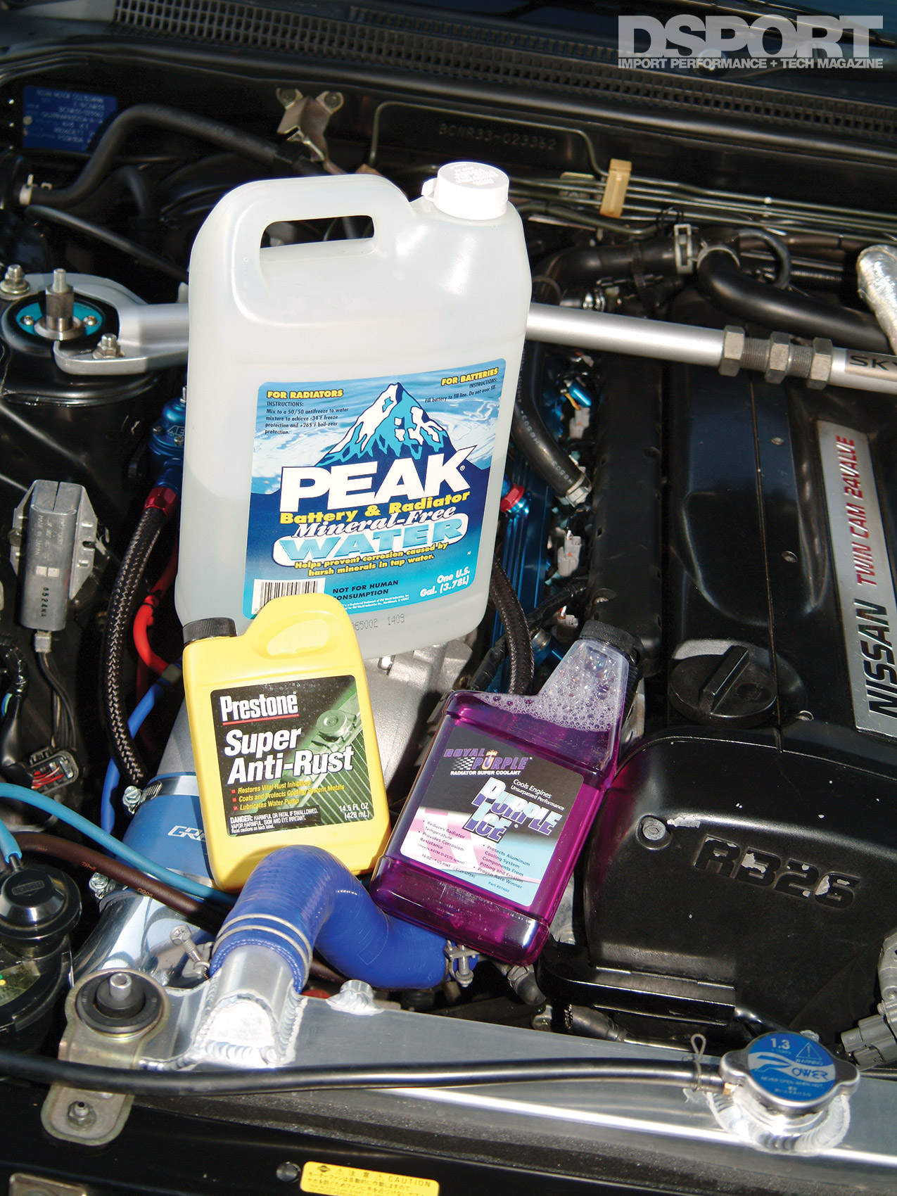 We filled our cooling system with distilled water, Prestone anti-rust and Royal Purple Purple Ice cooling system additive. It’s a great mix for any area that doesn’t experience freezing temperatures. Depending on where you live and the time of year, you may need to consider adding antifreeze to the mix. However, if you go to the dragstrip, be sure to drain out the coolant and replace it with distilled water in case any cooling system leaks occur on the track.