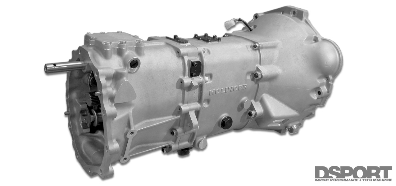 According to Mr. Yokomaku at VeilSide, the only drawback to the Holinger transmission is the price. With a price tag of $18,500 (AUD) or about $11,000 (U.S.), it is a big expense. However, it is a bolt-in complete aftermarket gearbox. Every internal component far exceeds the strength of the factory offering. It’s also a six-speed and is sequential. The gears are bevel cut for reduced noise. Gear changes are performed by using the standard gear lever and pulling back to upshift or forward to downshift. Gear engagement is performed by non-synchronized face dogs.