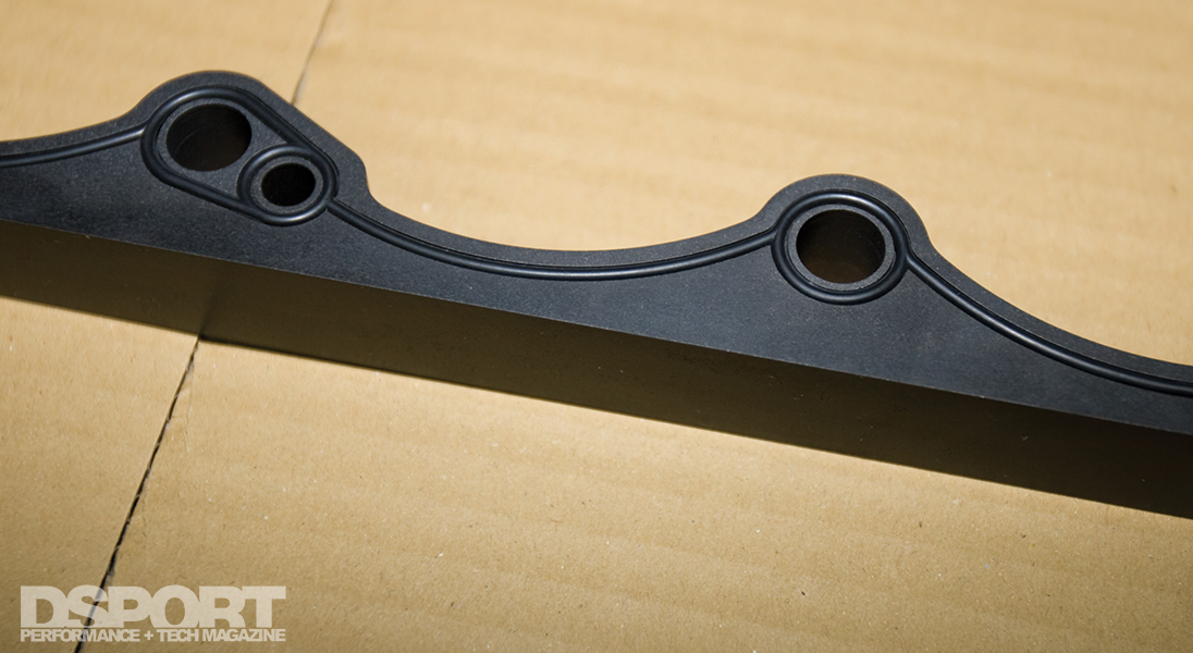 With the OS Giken-prepped shortblock in place, the high-flowing RB cylinder head was packed with TOMEI POWERED valves, springs and retainers before being mated to the block. OS Giken head studs secured the head to the block while an OS Giken 1.2mm head gasket provided a tight seal between the deck and the head. TOMEI POWERED 270-degree camshafts were degreed in the head to actuate the valvetrain and offer increased lift and duration over the factory bumpsticks.