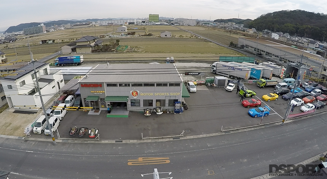 Driving down a quiet road with nothing but acres of fields and farmland might make you wonder if you’re heading in the right direction to find a performance tuning shop. However, once you see the rows of rotary-powered machines lined up facing the street, that doubt quickly evaporates. This is the experience of finding RE Pro Shop Miyoshi in Okayama.