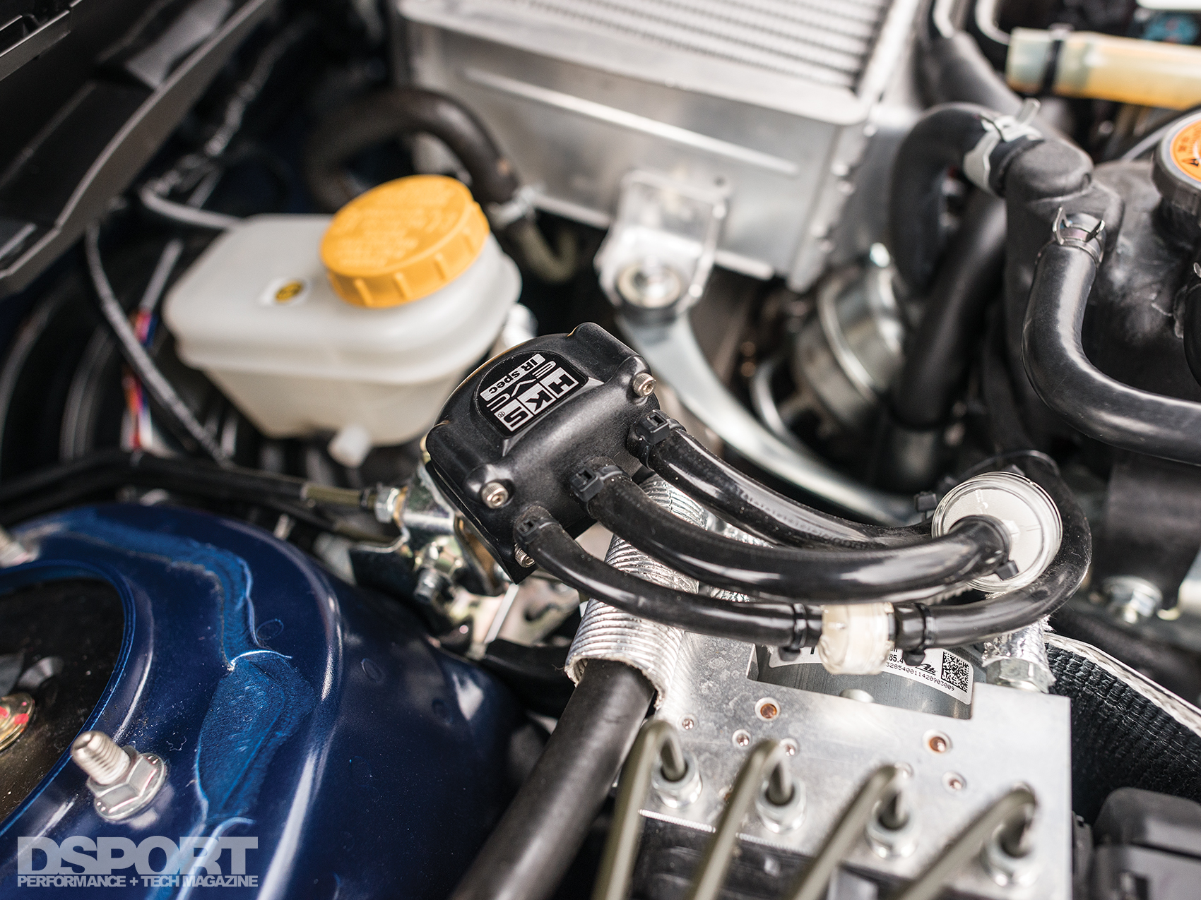 Unlike the VAB STI that Subaru exports to the USA, the JDM STI still relies on the 2.0-liter EJ207 engine. Producing around 300 horsepower from the factory, this engine continues to propel the STI, making parts selection straightforward since development has been ongoing for more than fifteen years. Like the GT-R, Asada started with the basic airflow restrictions, swapping out the stock airbox for an HKS Racing Suction kit and the factory exhaust for an HKS Spec L system. An HKS oil cooler helps to keep the oil temperatures in check, especially under hard driving conditions. Using an HKS Flash Editor to calibrate the factory ECU, Original Runduce’s in-house tuner, Mr. Oda, made adjustments to the tune, bringing horsepower levels up to 330ps and 47kgm torque. This equates to roughly 325 horsepower and 340 lb-ft torque to the wheels. Once calibrated with the EVC electronic boost control set to 23 psi, output goes up to 380ps or an impressive 375 horsepower.