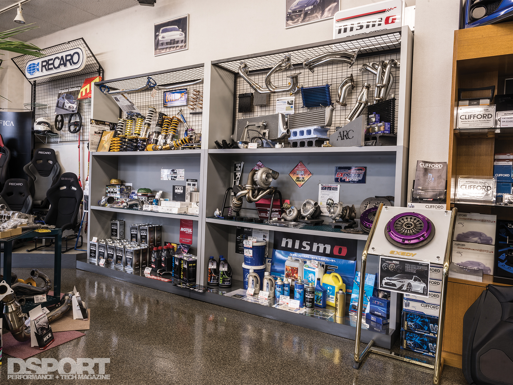 Original Runduce’s facility features a large show room, showcasing a broad range of merchandise ranging from engine internals, wheels, tires and brakes, to seats and in-car entertainment. A pair of desks allows the staff to sit down with clients to discuss their build objectives and to look at their options. The garage features three bays with in-ground scissor lifts, a tire mounting machine, a tire-balancing machine and a Dynapack dynamometer. From basic bolt-ons to full engine assemblies, Asada ensured that he covered all of the bases for his clients.
