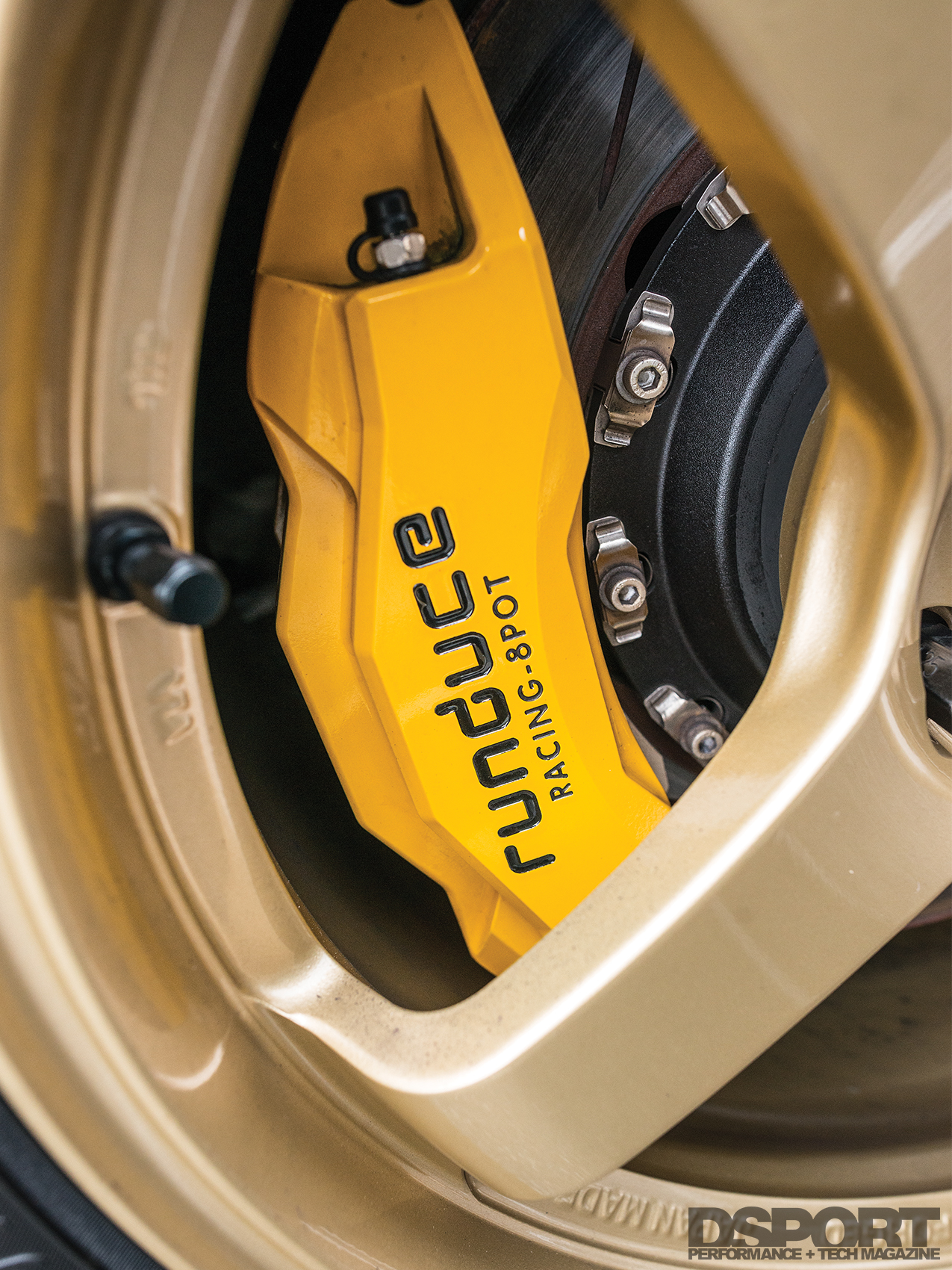 Original Runduce isn’t simply a retail shop that bolts parts onto cars. Asada does not hesitate to improve on what’s available by developing and offering solutions of his own design. This is especially the case when a particular car does not have specific parts solutions already available. For example, when he began to reach the torque capacity of the Aisin AZ6 transmission in the GT86 demo car, he worked with a manufacturer to design and private label a performance gear set that featured shorter ratios, larger teeth and dog engagement as a direct replacement for the stock gears in the factory transmission housing. Other examples of Asada’s development efforts include six- and four-piston big brake kits for a variety of marques, including Subaru, Mitsubishi, Toyota and Nissan to name a few. Product development has expanded to also include European applications, such as a big brake kit for the BMW F82 M4. Original Runduce also offers both street and racing adjustable coilover suspension packages for a number of platforms as well.