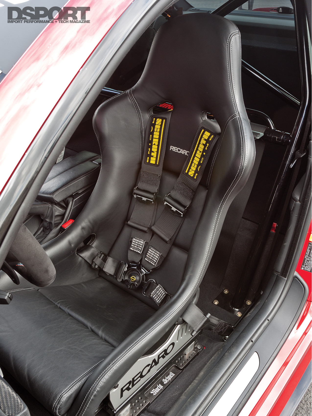 Despite it’s considerable curb weight of over 3,700 pounds, the M3, like Nissan’s GT-R, was engineered to handle well despite its weight. But Ricky desired more adjustability and looked to the aftermarket for components. Moton Club Sport adjustable dampers and Eibach springs replaced the factory suspenders, adding compression and rebound dampening control without sacrificing ride quality. The end result was a nimble and responsive ride quality that kept the tires planted through the most challenging turns.