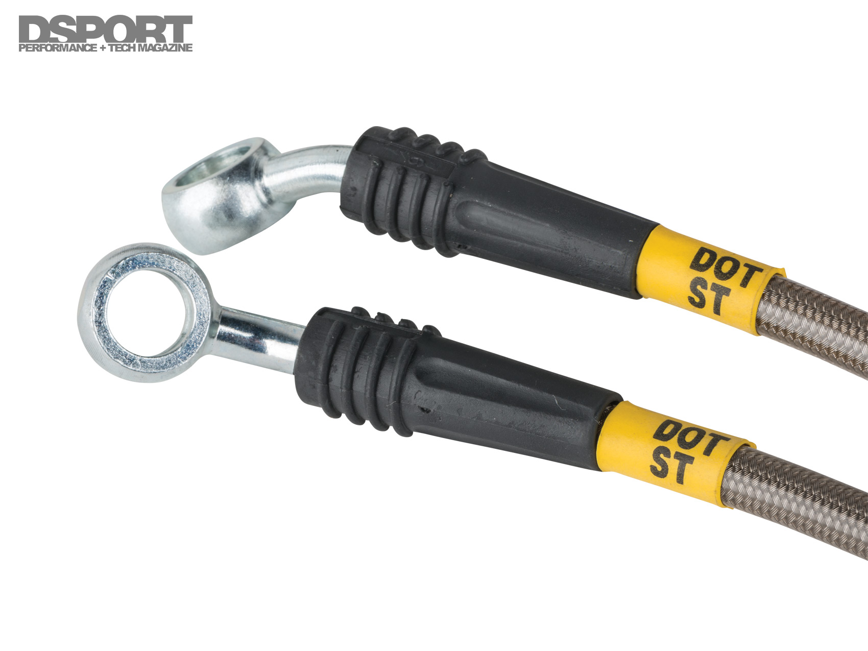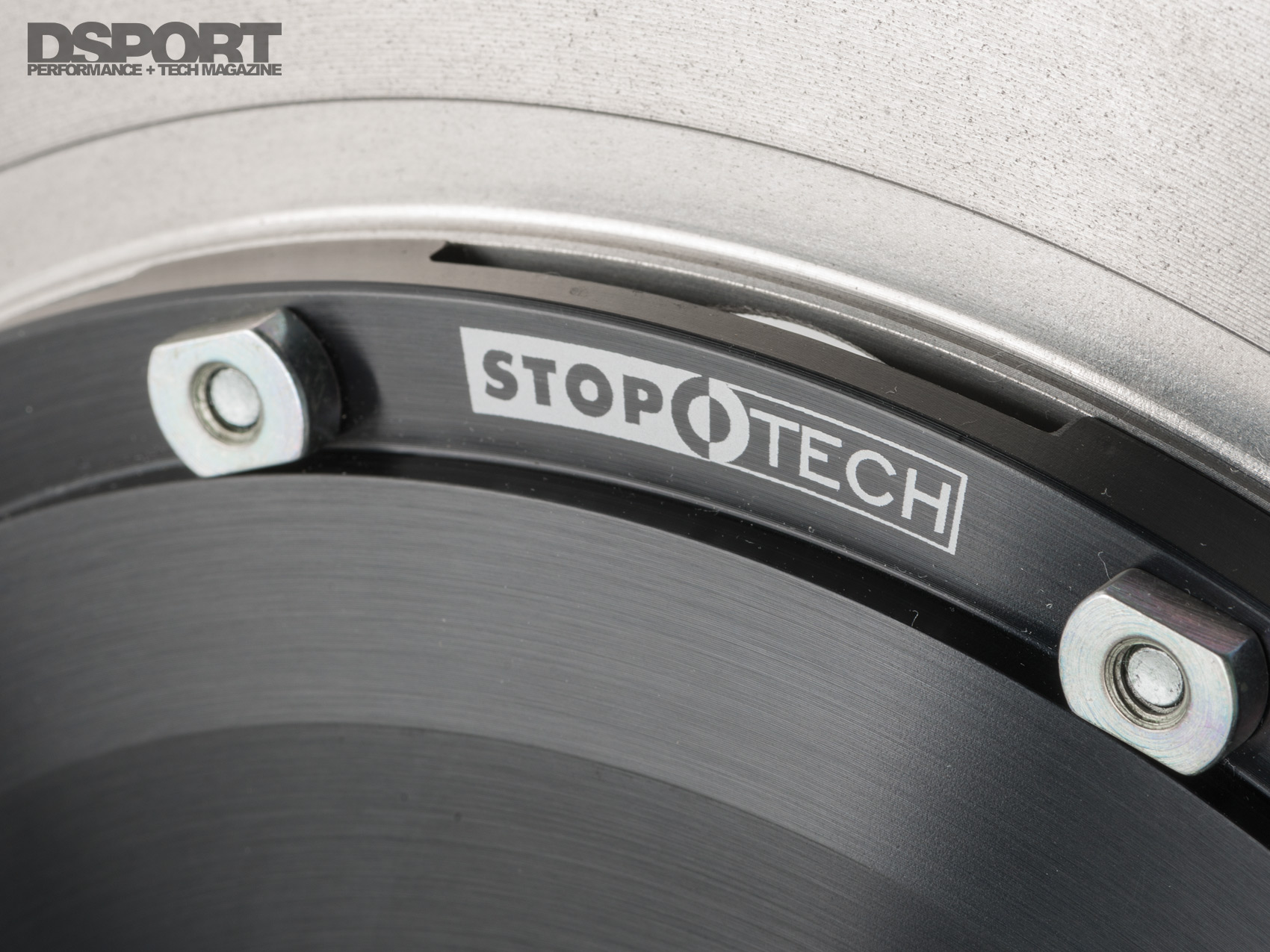 Since Bok’s R35 had already clocked over 40,000 miles (some of which were clearly track days) at the time of purchase, the factory brakes had seen better days. The rotors were worn beyond the minimum thicknesses and the car simply didn’t stop like it should. To address the lack of stopping power, we turned to StopTech for a brake upgrade solution. The StopTech AeroRotor Replacement kit includes twopiece slotted rotors that are much less prone to cracking than the factory crossdrilled discs. In addition, the setup includes street-compound pads, STR600 DOT4 brake fluid and direct replacement stainless steel braided brake lines. With the pads, lines and rotors installed, we flushed out the old brake fluid (which was past due for a change as indicated by its brown color) and bled out any air trapped in the brake lines.