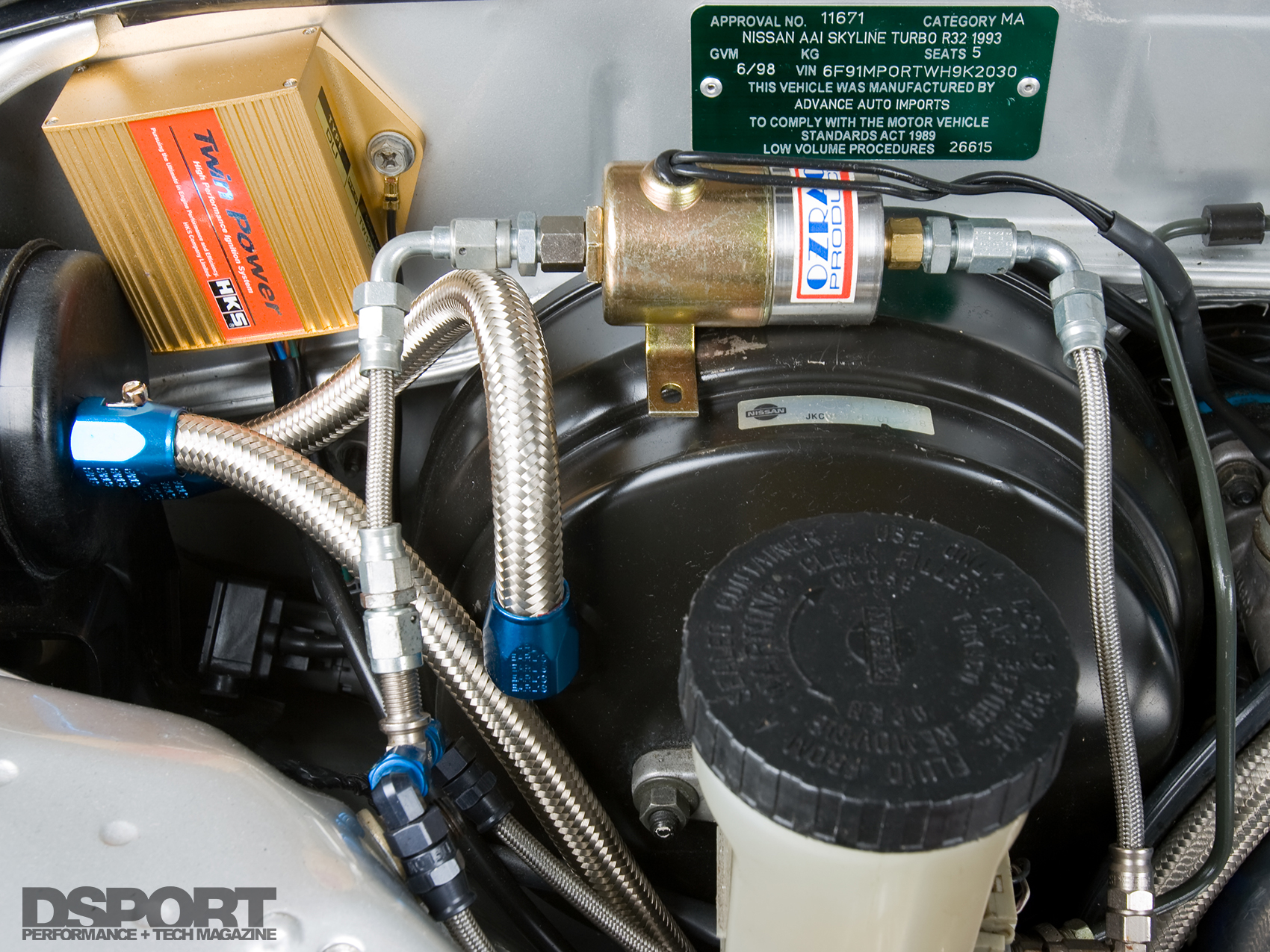 While producing gratuitous amounts of power was essential for cutting quicker elapsed times at the strip, getting the power down efficiently was equally important. An OS Giken 5-speed short-ratio transmission was installed and equipped with a custom NPC twin-plate clutch capable of transferring up to 1,000 horsepower. Cusco’s 1-way front differential and a NISMO 2- way rear differential were enlisted to distribute power properly to each of the R32s driving corners.