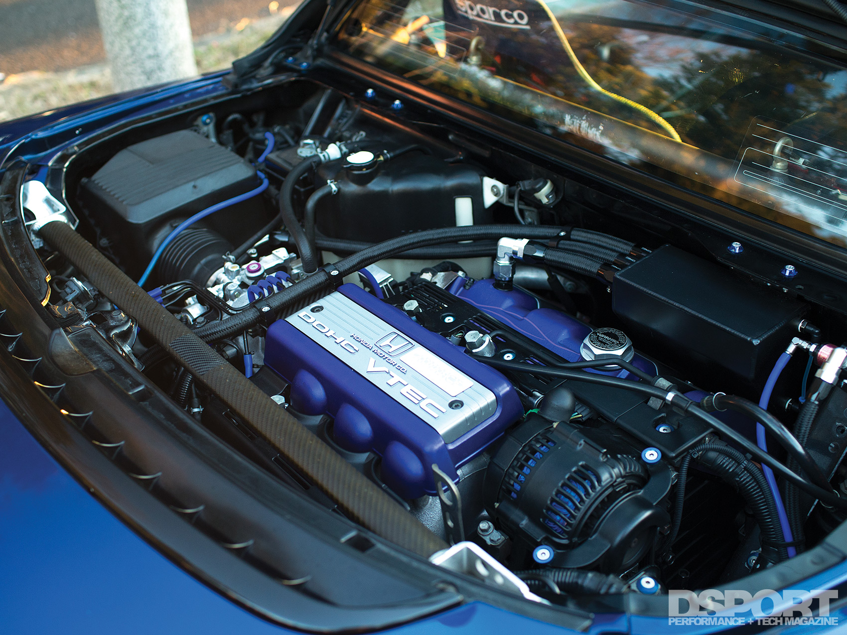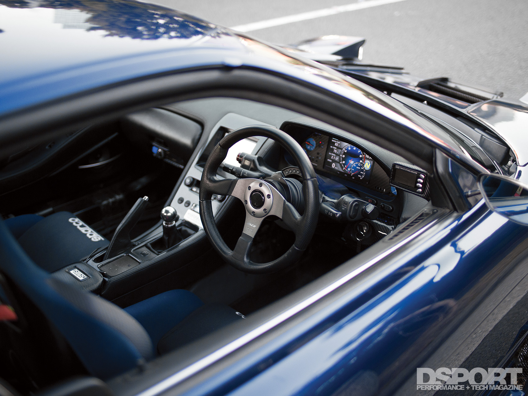 On the exterior, the NSX’s deep factory blue hue was applied to an assortment of Marga Hills widebody aero kit pieces to give the NA1 some girth. Mr. J fashioned a custom splitter, diffuser and belly pan to help with airflow under the chassis. A GT wing composed of Garage BB and Matrix components further adds to the downforce being applied over the rear wheels. Functional aero combined with Mr. J’s custom touch further separated his NSX from the rest.