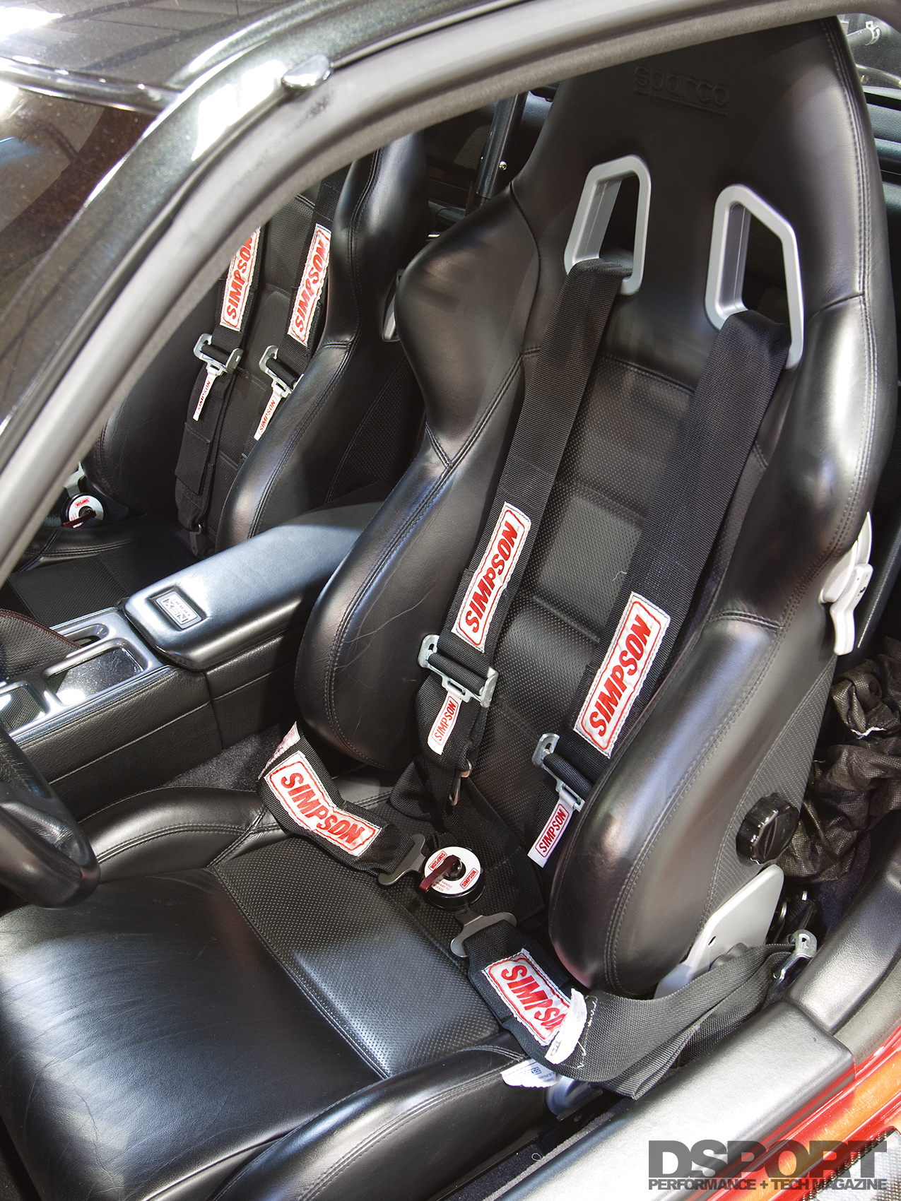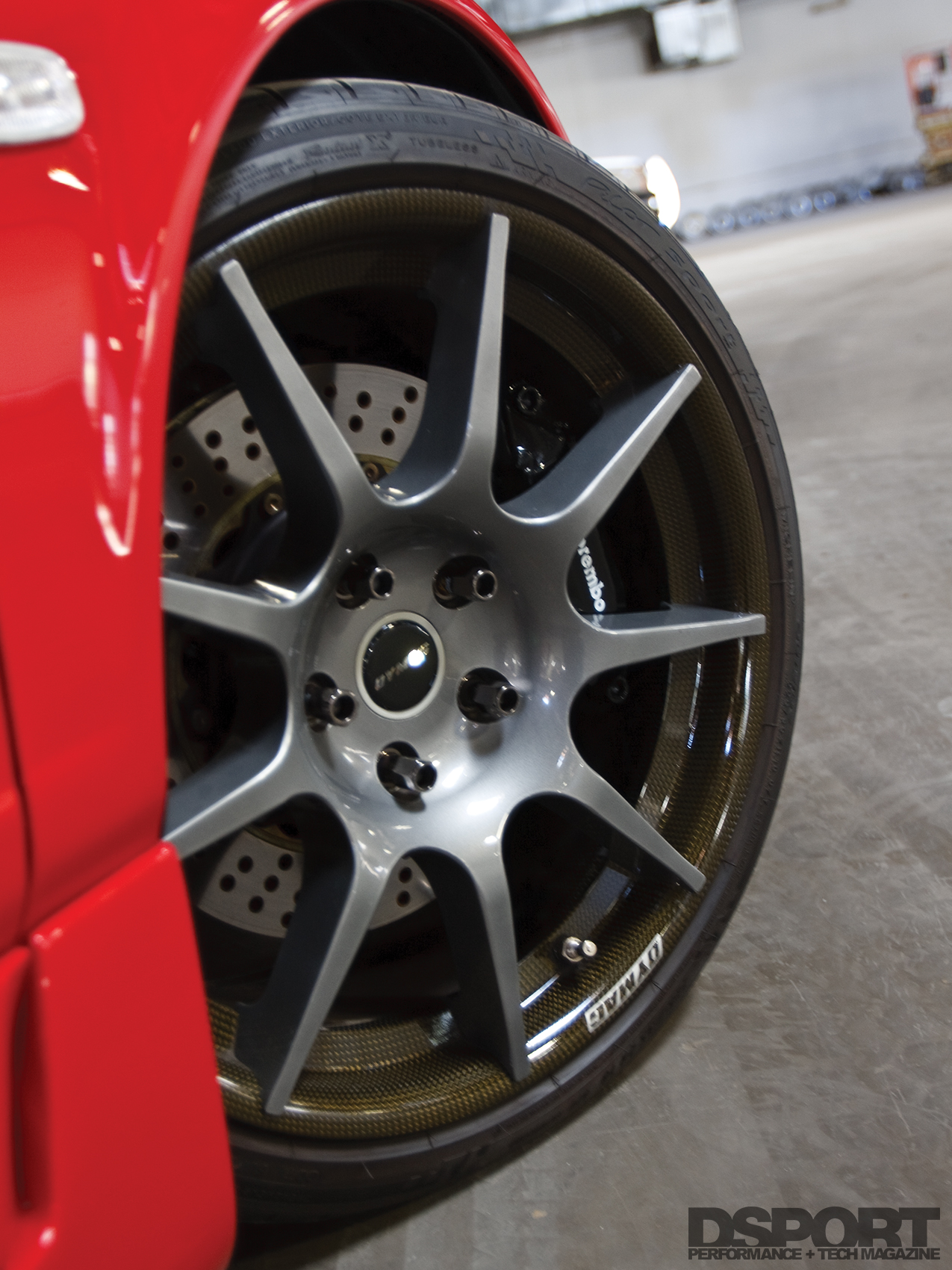 Modernization of the NSX’s performance alone wouldn’t be enough as aesthetics received equal attention. Already converted with the fixed headlights off the 2002 model, the NSX received Downforce carbon-fiber front fenders, lip spoiler, Type-R trunk lid and rear diffuser, reducing total weight and enhancing the body lines. The front fenders along with Taitec rear quarter panels provide generous wheel wells to house wider rubber. Rarely-seen Dymag wheels constructed from magnalium and carbon fiber wrapped with Michelin Pilot Sport tires reduce the moment of inertia and unsprung weight, improving acceleration, braking and handling.